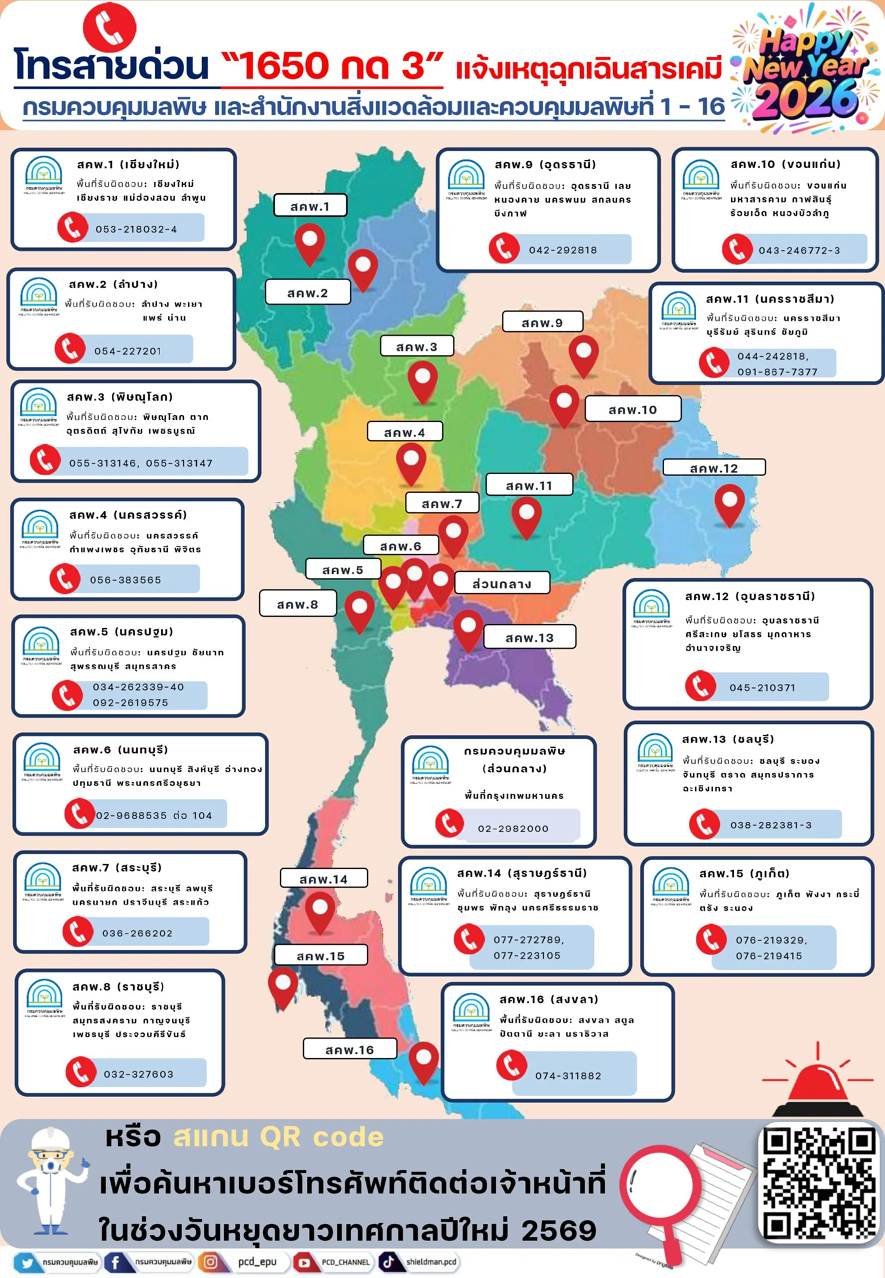 ทั้งนี้ หากหน่วยงานท้องถิ่นหรือประชาชนพบเหตุฉุกเฉินด้านมลพิษและสารเคมี สามารถแจ้งเหตุได้ที่สายด่วนมลพิษ โทร. 1650 ตลอด 24 ชั่วโมง.