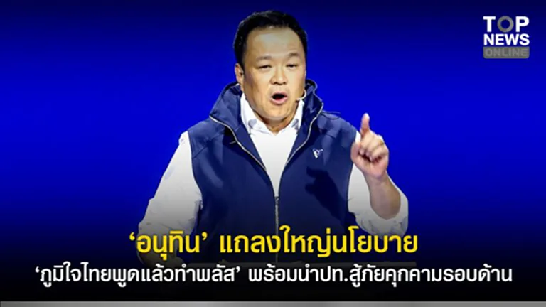 “อนุทิน” แถลงใหญ่นโยบาย “ภูมิใจไทยพูดแล้วทำพลัส” ชู 3 ชื่อดรีมทีมร่วมทัพ พร้อมนำปท.สู้ภัยคุกคามรอบด้าน ลั่นย้ำเดินหน้าปราบทุนเทา สแกมเมอร์ – Top News รายงาน