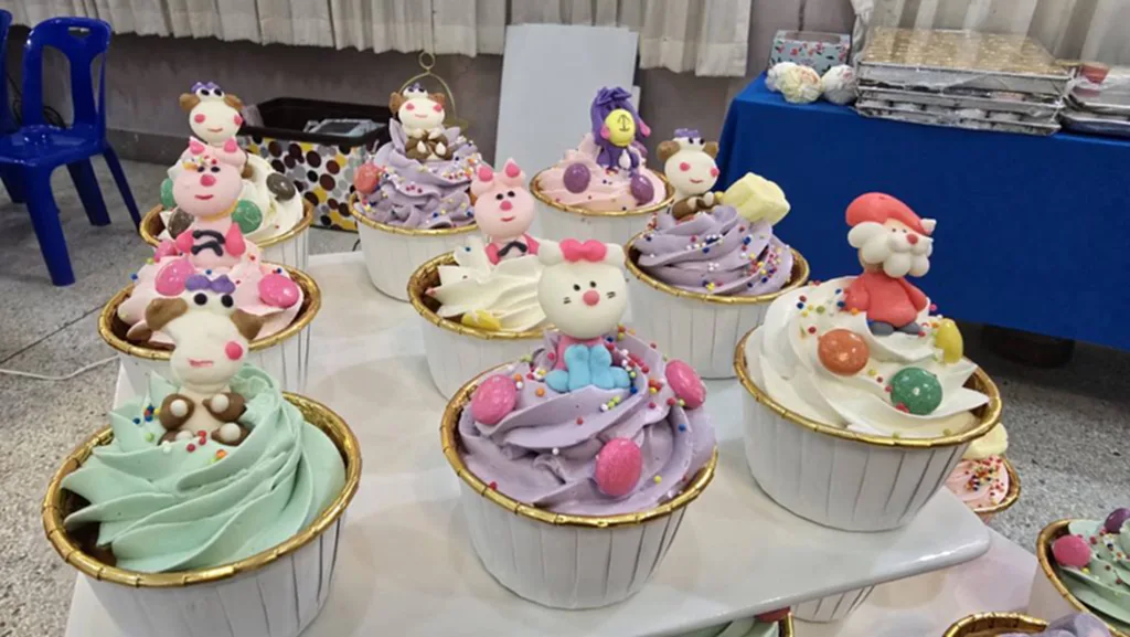 การผลิตเค้ก เป็นส่วนหนึ่งของการเรียนการสอน นักศึกษาได้ฝึกตั้งแต่การคัดวัตถุดิบ บริหารต้นทุน ตั้งราคาขาย และฝึกการสื่อสารกับลูกค้า โดยนักศึกษาที่ร่วมจำหน่ายจะได้รับรายได้ระหว่างเรียน