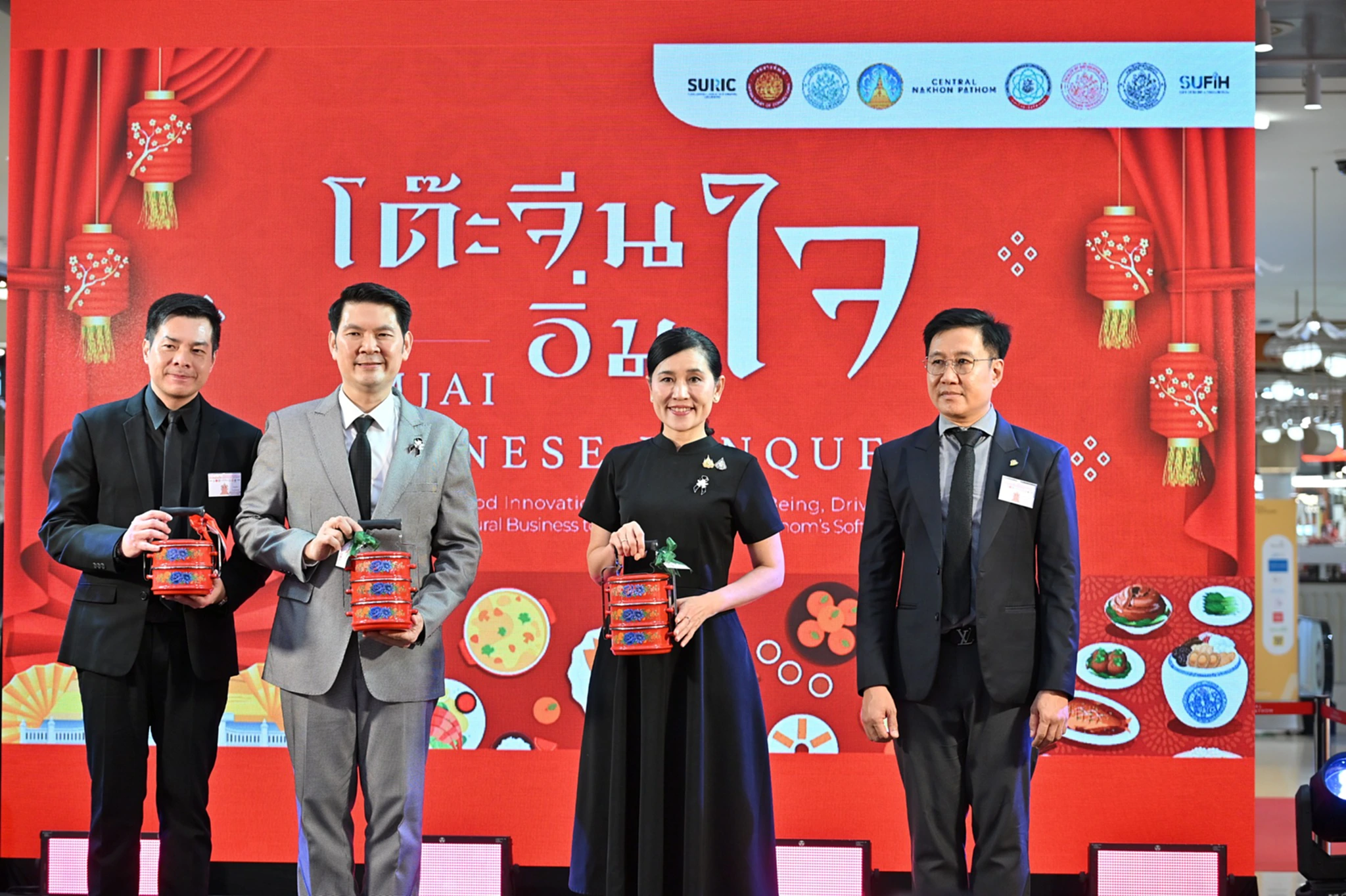 วันที่ 23 ธันวาคม 2568 ณ ลานกิจกรรม ชั้น G ศูนย์การค้าเซ็นทรัล จังหวัดนครปฐม นางสาวอโรชา นันทมนตรี ผู้ว่าราชการจังหวัดนครปฐม เป็นประธานพิธีเปิดตัวโครงการ “โต๊ะจีนอิ่มใจ:บูรณาการนวัตกรรมอาหารสุขภาวะองค์รวม ขับเคลื่อนด้วยการออกแบบและธุรกิจเชิงวัฒนธรรม