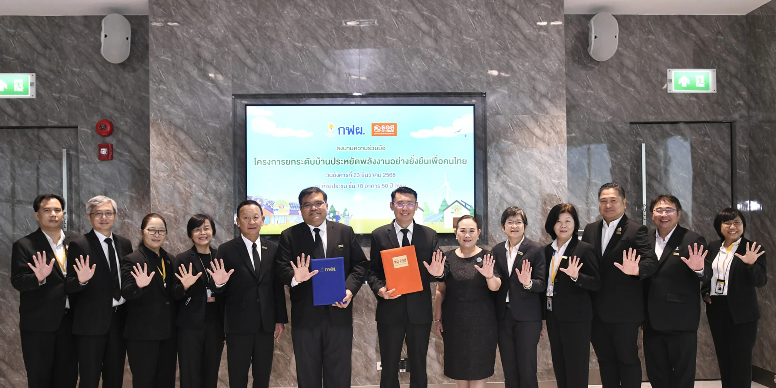 กฟผ. ร่วมกับ ธอส. ลงนามความร่วมมือโครงการยกระดับบ้านประหยัดพลังงานอย่างยั่งยืนเพื่อคนไทย ส่งเสริมการสร้าง ซื้อ ปรับปรุงที่พักอาศัยสู่บ้านประหยัดพลังงาน พร้อมให้คำปรึกษาด้านการยกระดับประสิทธิภาพการใช้พลังงานในบ้าน ร่วมขับเคลื่อนประเทศสู่สังคมคาร์บอนต่ำ