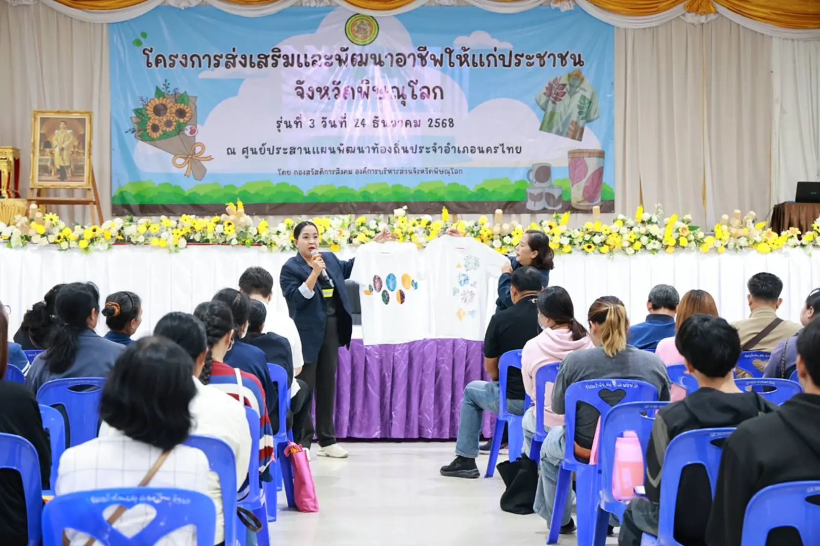 วันที่ 24 ธันวาคม 2568 นายมนต์ชัย วิวัฒน์ธนาฒย์ นายกองค์การบริหารจังหวัดพิษณุโลก มอบหมายให้ ว่าที่ร้อยตรี วีรภัทร จีนด้วงเลขานุการนายกองค์การบริหารส่วนจังหวัดพิษณุโลก พร้อมด้วย นางสาวศรีสุรางค์ จูทอง รองปลัดองค์การบริหารส่วนสจังหวัดพิษณุโลก เป็นประธานในพิธีเปิดโครงการ “ส่งเสริมและพัฒนาอาชีพให้แก่ประชาชน จังหวัดพิษณุโลก” รุ่นที่ 3 ณ ศูนย์ประสานแผนพัฒนาท้องถิ่นประจำอำเภอนครไทย จังหวัดพิษณุโลก ภายในพิธีได้รับเกียรติจาก นายไสว เจริญศรี นายอำเภอนครไทย พร้อมด้วย นายอาวุธ ยวนแห่ว สมาชิกสภาองค์การบริหารส่วนจังหวัดพิษณุโลก อำเภอนครไทย เขต 3 ร่วมเป็นเกียรติในพิธีเปิดโครงการ โดยมีประชาชนเข้าร่วมฯ จำนวน 100 คน