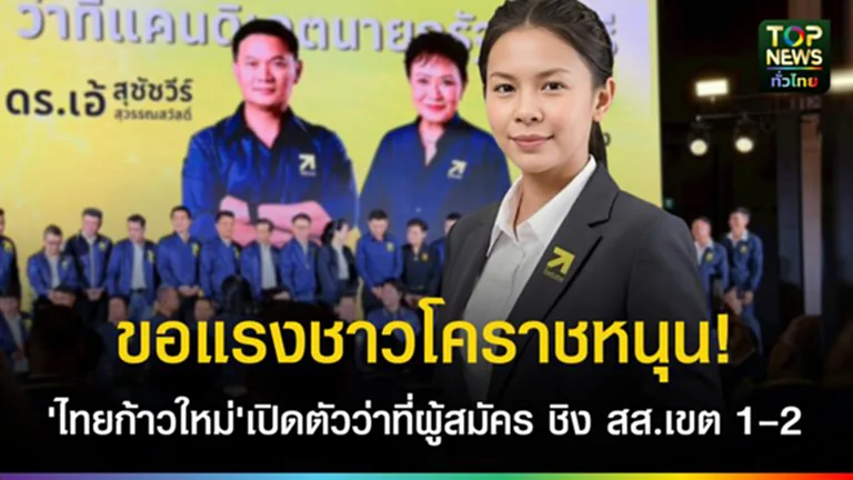 ‘ไทยก้าวใหม่’เปิดตัวหญิงแกร่งเมืองย่าโม “ทนายนา–ณัฐธยาน์” ชิง สส.โคราช เขต 1–2 ดร.เอ้ ขอแรงชาวโคราชหนุน