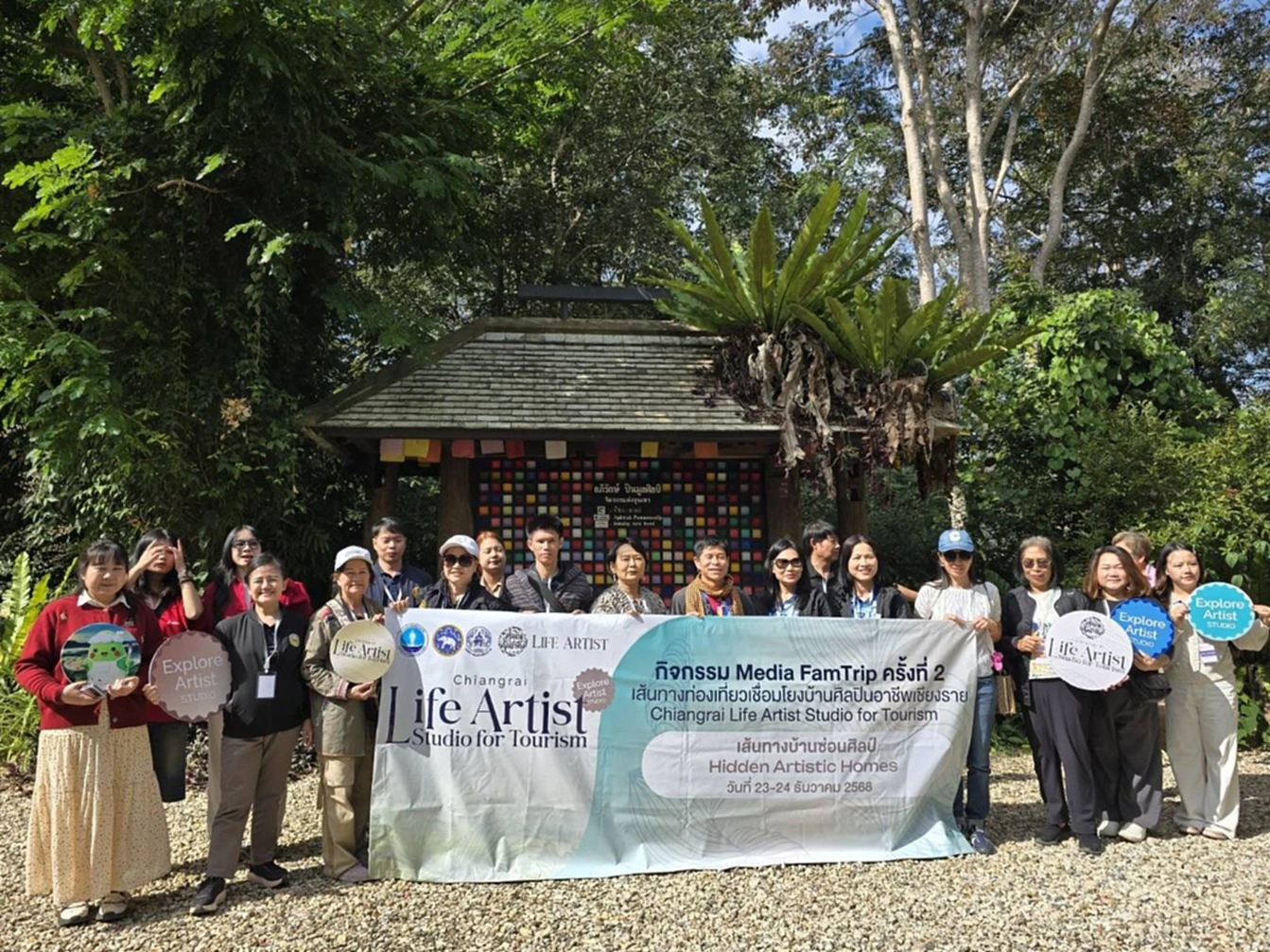 สำนักงานท่องเที่ยวและกีฬาจังหวัดเชียงราย (ทกจ.เชียงราย) จัดกิจกรรม Media FamTrip เปิดเส้นทางท่องเที่ยว “บ้านซ่อนศิลป์ (Hidden Artistic Homes)” ภายใต้โครงการ Life Artists ศิลปินศิลปาชีพสร้างสรรค์เพื่อการท่องเที่ยวอย่างยั่งยืน ระหว่างวันที่ 23–24 ธันวาคม 2568 เชื่อมโยงบ้านศิลปินอาชีพและพื้นที่ศิลปะสำคัญของจังหวัดเชียงราย เพื่อสร้างการรับรู้ กระตุ้นการท่องเที่ยว และเพิ่มมูลค่าเศรษฐกิจสร้างสรรค์ในพื้นที่