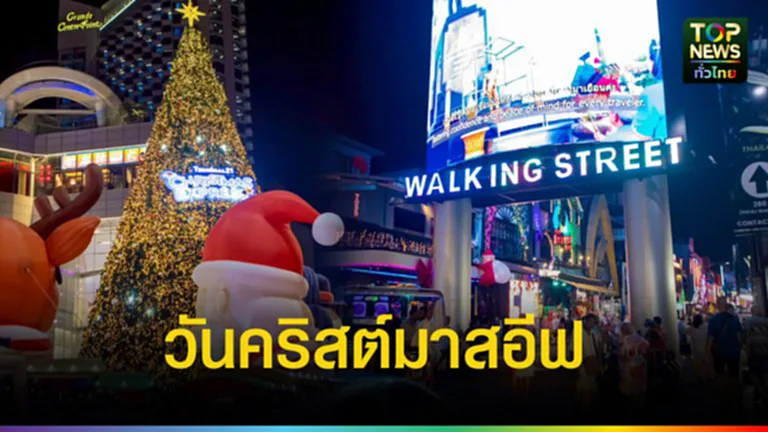 คริสต์มาสอีฟพัทยาคึกคัก นักท่องเที่ยวแน่นวอล์คกิ้งสตรีท บาร์เบียร์สีสันกลับมา ตำรวจระดมกำลังดูแลความปลอดภัย