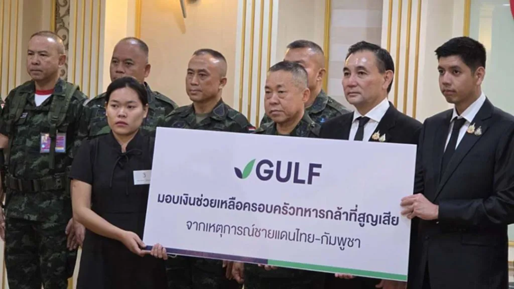 “Gulf” มอบเงินจาก “กองทุน 100 ล้าน” ส่งต่อ 23 ครอบครัวทหารไทย พลีชีพปกป้องอธิปไตย พร้อมใช้เทคโนฯดาวเทียมช่วยภารกิจกองทัพเต็มที่