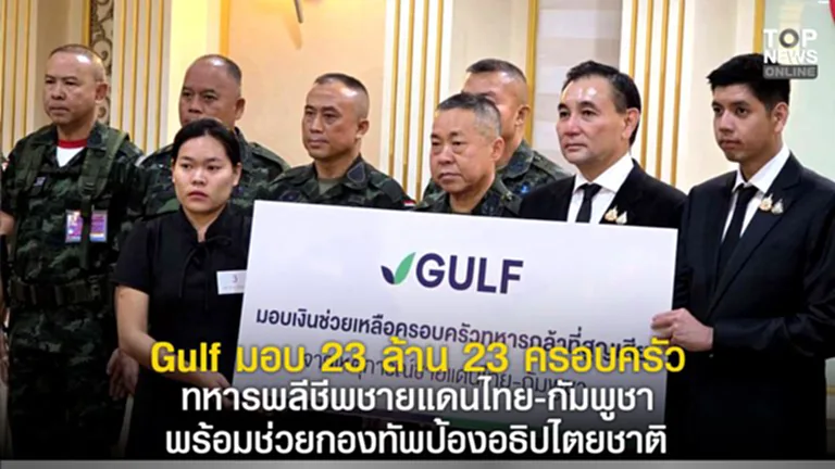 "Gulf" มอบเงินจาก "กองทุน 100 ล้าน" ส่งต่อ 23 ครอบครัวทหารไทย พลีชีพปกป้องอธิปไตย พร้อมใช้เทคโนฯดาวเทียมช่วยภารกิจกองทัพเต็มที่