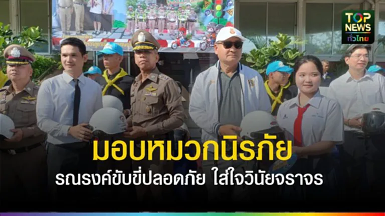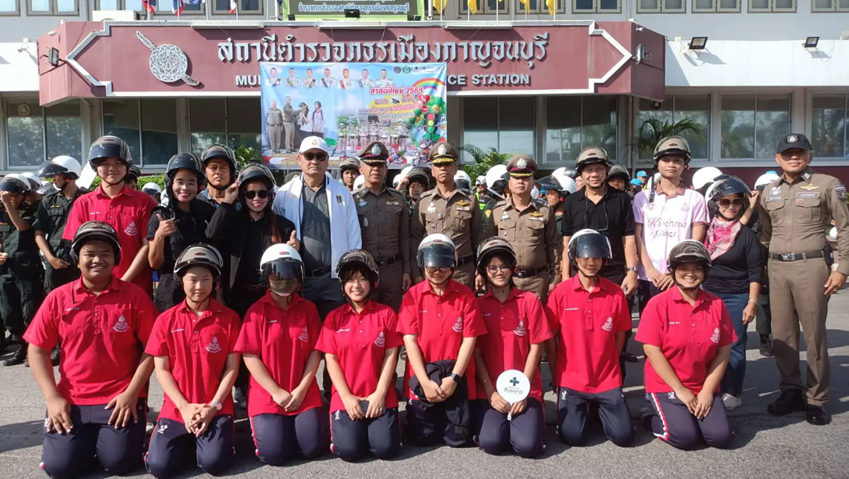 ผบก.ภ.จว.กาญจนบุรี เป็นประธานมอบหมวกนิรภัยแก่ นร.-นักศึกษา และประชาชน เสริมสร้างจิตสำนึก “ขับขี่ปลอดภัย สวมใส่หมวก 100%”