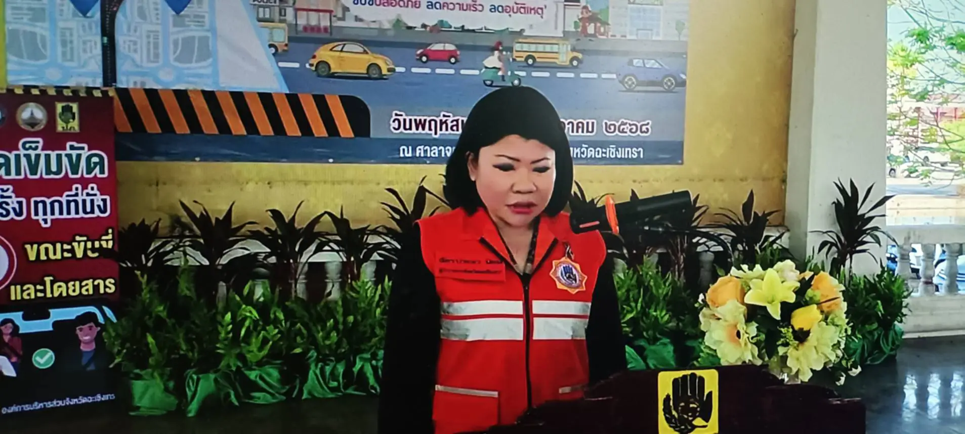 วันนี้เวลา 09.00 น. ที่บริเวณศาลาจัตุรมุข หน้าศาลากลางจังหวัดฉะเชิงเทรา นางสาวฉัตรประอร นิยม ผู้ว่าราชการจังหวัดฉะเชิงเทรา เป็นประธานเปิดศูนย์ปฏิบัติการป้องกันและลดอุบัติเหตุทางถนนในช่วงเทศกาลปีใหม่ พ.ศ.2569 “ขับขี่ปลอดภัย ลดความเร็ว ลดอุบัติเหตุ” ด้วยคณะกรรมการนโยบายการป้องกันและลดอุบัติเหตุทางถนนแห่งชาติ เห็นชอบขับเคลื่อนแผนลดอุบัติเหตุปี 2569 เดินหน้าบูรณาการทุกหน่วยลดผู้บาดเจ็บ-เสียชีวิต พร้อมกำชับ 7 วันอันตรายปีใหม่ วันที่ 30 ธ.ค. 68 – 5 ม.ค. 69 เข้มดื่มไม่ขับ–สวมหมวกนิรภัย เพื่อความปลอดภัยของทุกคน