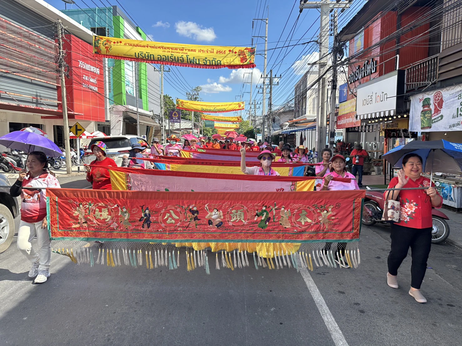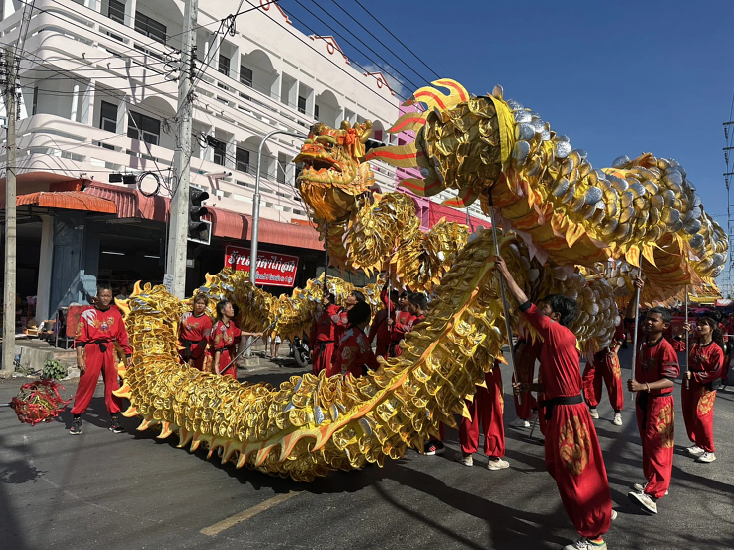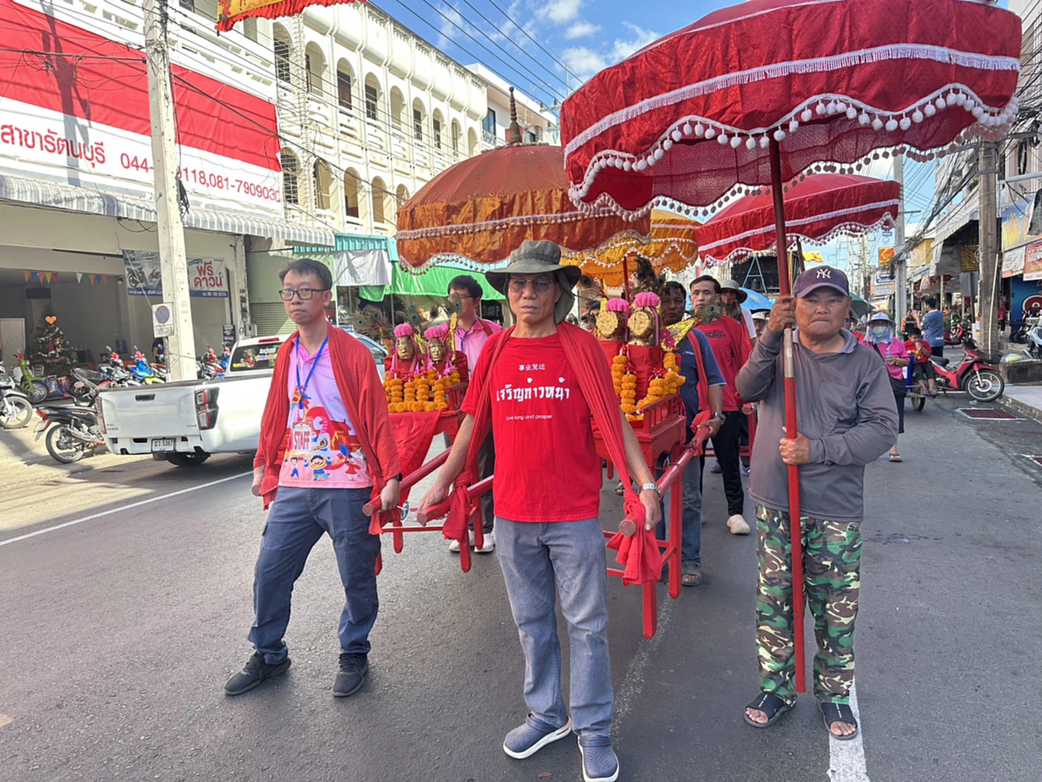 จากนั้นขบวนก็ได้เริ่มแห่ออกจากศาลเจ้าพ่อพระศรีนครเตาท้าวเธอ โดยมีขบวนเชิดสิงโตและมังกรทอง พร้อมขบวนแห่จากชาวบ้านในอำเภอรัตนบุรี ร่วมจัดขบวนกันอย่างสวยงามสมเกียรติโดยแห่ไปตามถนนศรีนคร และเมื่อขบวนแห่มาถึงบริเวณสี่แยกถนนศรีนครตัดกับถนนศรีรัตน์ก่อนถึงปะรำพิธีชั่วคราว ก็ได้มีการแสดงการต่อตัว และการเชิดมังกรทองให้นักท่องเที่ยวได้ชมกันอย่างสนุกสนานตระการตาเป็นอย่างยิ่ง ก่อนขบวนจะแห่ต่อไปจนถึงปะรำพิธีชั่วคราวที่บริเวณหน้าตลาดสดเทศบาลรัตนบุรี จากนั้นคณะกรรมการศาลเจ้าก็ได้ร่วมกันอัญเชิญองค์เจ้าพ่อพระศรีนครเตาท้าวเธอ เข้าไปประดิษฐานในปะรำพิธีชั่วคราว เพื่อเริ่มงานฉลองประจำปี 2568 ต่อไป เพื่อขอพรและเพื่อความเป็นสิริมงคล ขอให้ชาวอำเภอรัตนบุรีมีความสุขและมีโชคในโอกาสที่ใกล้จะถึงวันส่งท้ายปีเก่าต้อนรับปีใหม่ที่ใกล้จะถึงนี้ด้วย.