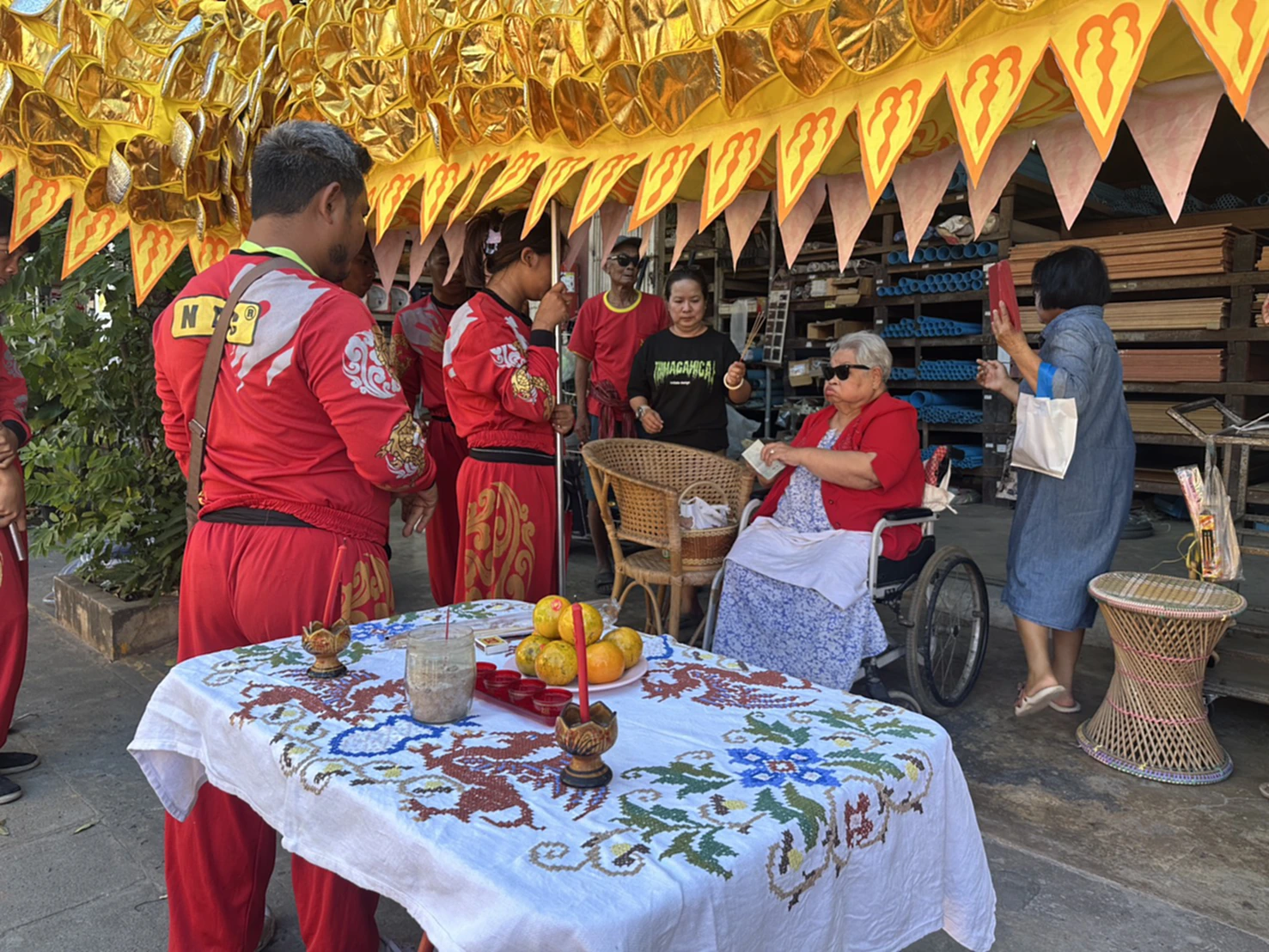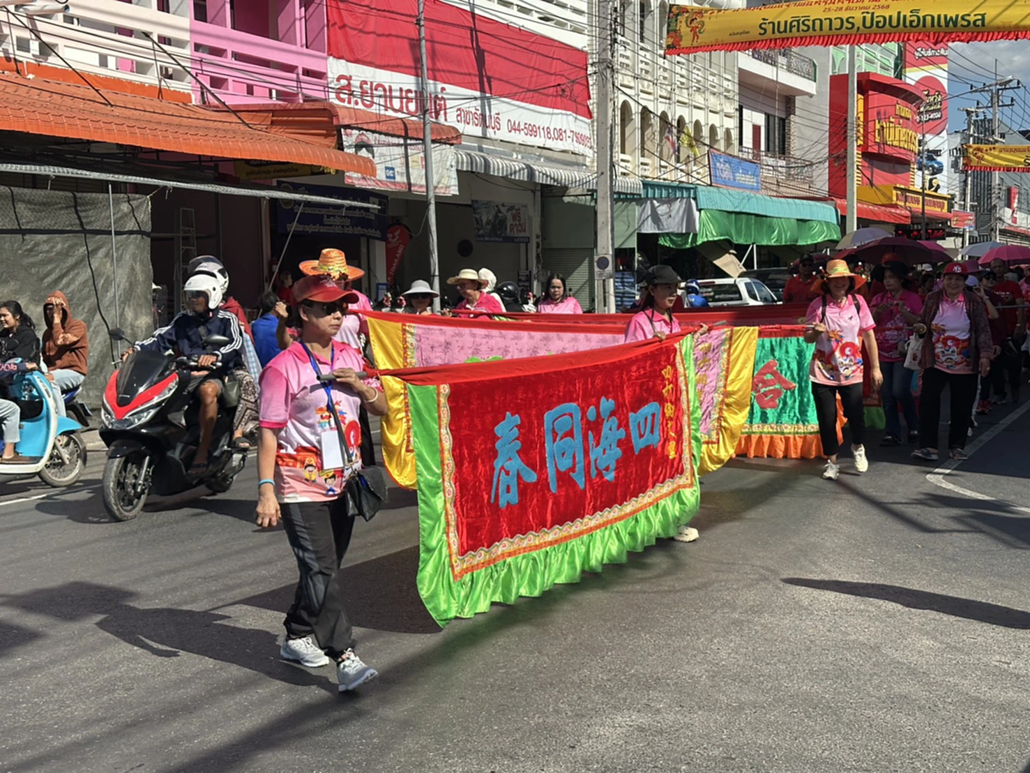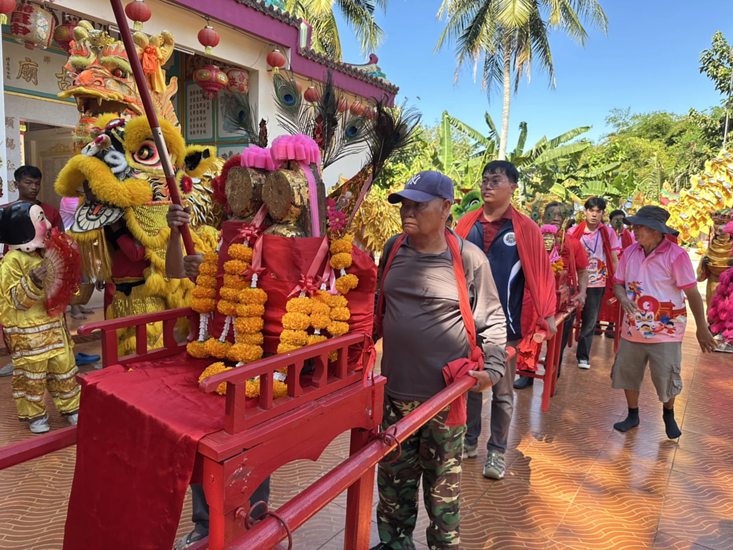 จากนั้นขบวนก็ได้เริ่มแห่ออกจากศาลเจ้าพ่อพระศรีนครเตาท้าวเธอ โดยมีขบวนเชิดสิงโตและมังกรทอง พร้อมขบวนแห่จากชาวบ้านในอำเภอรัตนบุรี ร่วมจัดขบวนกันอย่างสวยงามสมเกียรติโดยแห่ไปตามถนนศรีนคร และเมื่อขบวนแห่มาถึงบริเวณสี่แยกถนนศรีนครตัดกับถนนศรีรัตน์ก่อนถึงปะรำพิธีชั่วคราว ก็ได้มีการแสดงการต่อตัว และการเชิดมังกรทองให้นักท่องเที่ยวได้ชมกันอย่างสนุกสนานตระการตาเป็นอย่างยิ่ง ก่อนขบวนจะแห่ต่อไปจนถึงปะรำพิธีชั่วคราวที่บริเวณหน้าตลาดสดเทศบาลรัตนบุรี จากนั้นคณะกรรมการศาลเจ้าก็ได้ร่วมกันอัญเชิญองค์เจ้าพ่อพระศรีนครเตาท้าวเธอ เข้าไปประดิษฐานในปะรำพิธีชั่วคราว เพื่อเริ่มงานฉลองประจำปี 2568 ต่อไป เพื่อขอพรและเพื่อความเป็นสิริมงคล ขอให้ชาวอำเภอรัตนบุรีมีความสุขและมีโชคในโอกาสที่ใกล้จะถึงวันส่งท้ายปีเก่าต้อนรับปีใหม่ที่ใกล้จะถึงนี้ด้วย.