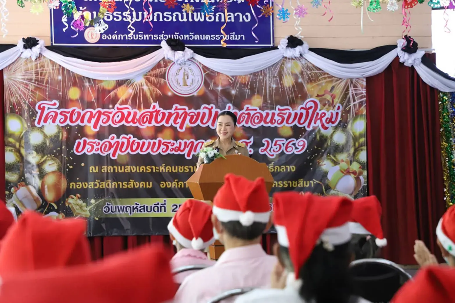 วันที่ 25 ธันวาคม 2568 ณ สถานสงเคราะห์คนชราบ้านธรรมปกรณ์โพธิ์กลาง นางยลดา หวังศุภกิจโกศล นายกองค์การบริหารส่วนจังหวัดนครราชสีมา พร้อมด้วย นายจิรพิสิษฐ์ รุจน์เจริญ เลขานุการนายก อบจ. นายธรรมบาล ฉิมพลี รองปลัด อบจ. นางรังสิยา นุทกิจ ผู้อำนวยการกองสวัสดิการสังคม และเจ้าหน้าที่ผู้ดูแลผู้สูงอายุ ร่วมจัดกิจกรรมส่งท้ายปีเก่า ต้อนรับปีใหม่ เพื่อส่งมอบความสุข ความรัก และความอบอุ่นแด่คุณตาคุณยายภายในสถานสงเคราะห์ฯ