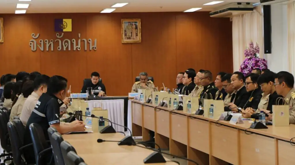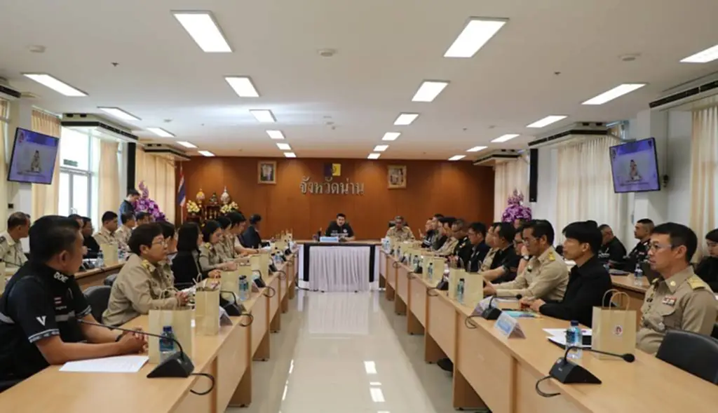 โดยมี นายชัยนรงค์ วงศ์ใหญ่ ผู้ว่าราชการจังหวัดน่าน และผู้อำนวยการ กอ.รมน.จังหวัดน่าน เป็นประธานการประชุม พร้อมด้วย นายบรรจง ขุนเพชร รองผู้ว่าราชการจังหวัดน่าน พันเอกทศพล ผ่องศรีสุข รองผู้บัญชาการมณฑลทหารบกที่ 38 และรองผู้อำนวยการ กอ.รมน.จังหวัดน่าน ตลอดจนหัวหน้าส่วนราชการและหน่วยงานที่เกี่ยวข้องเข้าร่วมประชุม