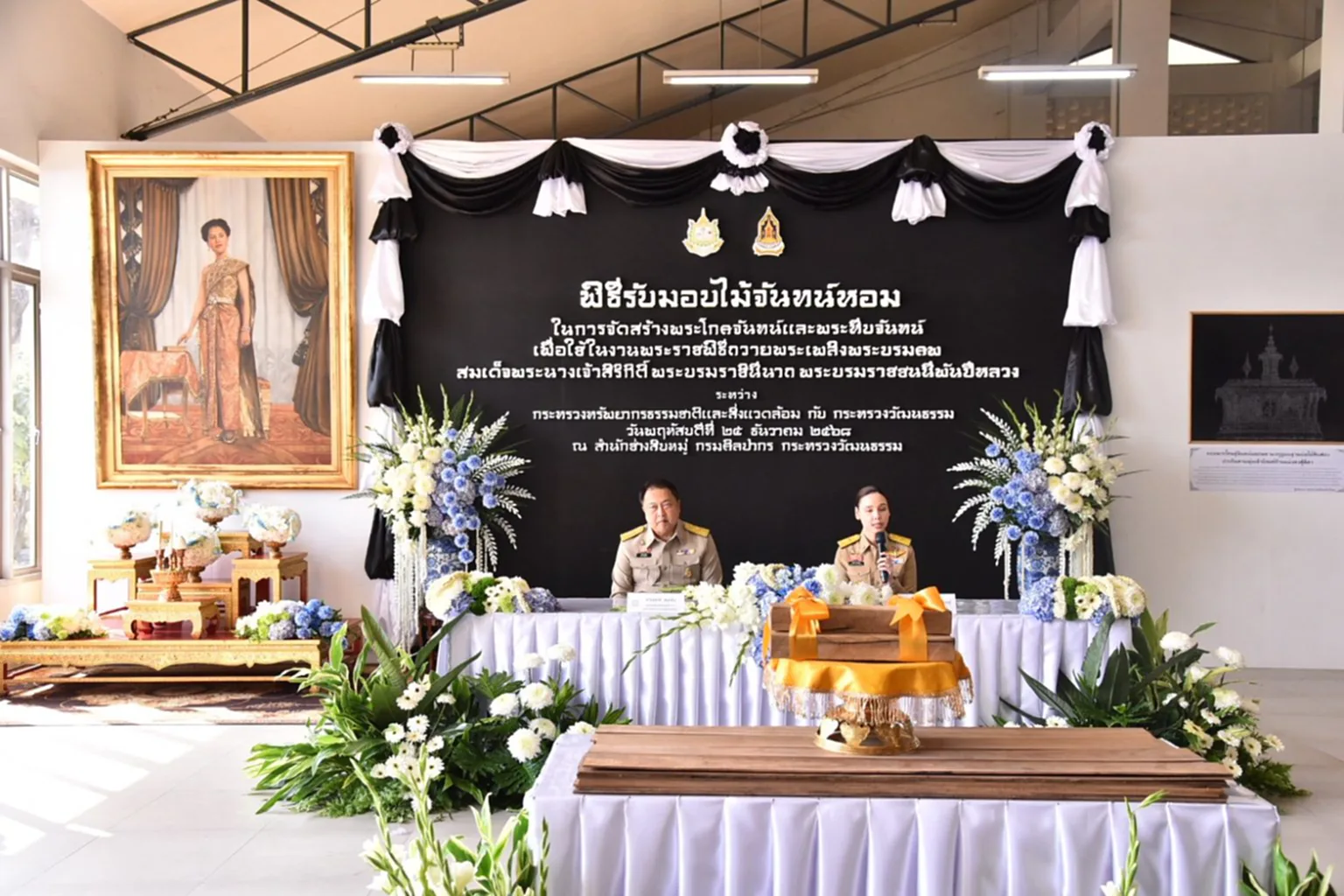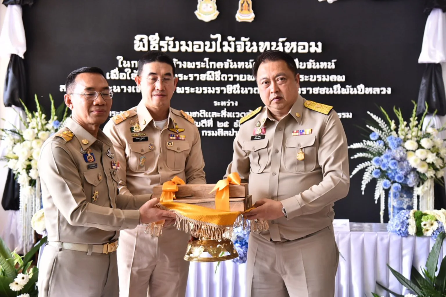 ​25 ธันวาคม​ 2568 ณ สำนักช่างสิบหมู่ กรมศิลปากร จังหวัดนครปฐม นายสุชาติ ชมกลิ่น รองนายกรัฐมนตรีและรัฐมนตรีว่าการกระทรวงทรัพยากรธรรมชาติและสิ่งแวดล้อม พร้อมด้วย นางสาวชาบีดา ไทยเศรษฐ์ รัฐมนตรีว่าการกระทรวงวัฒนธรรม เป็นประธานในพิธีส่งมอบไม้จันทน์หอมแปรรูป โดยมี นายอรรถพล เจริญชันษา อธิบดีกรมอุทยานแห่งชาติ สัตว์ป่า และพันธุ์พืช และ นายพนมบุตร จันทรโชติ อธิบดีกรมศิลปากร ร่วมลงนามบันทึกข้อตกลงการส่งมอบไม้จันทน์หอม