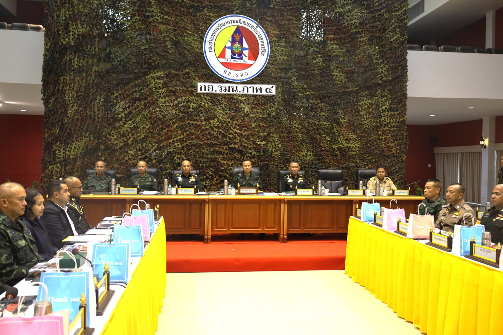นอกจากนี้ ที่ประชุมได้สรุปสถานการณ์ด้านการข่าวในห้วงเวลาที่ส่งผลกระทบต่อความมั่นคงในพื้นที่ภาคใต้รับทราบข้อสั่งการของ ผอ.รมน. และนโยบายสำคัญในการขับเคลื่อนของ กอ.รมน. ในปี 2569 โครงสร้างการจัดอัตรากำลังและอำนาจหน้าที่ของ กอ.รมน.ภาค และ กอ.รมน.จังหวัด รวมทั้งการแก้ไขปัญหาภัยคุกคามในพื้นที่ปัญหายาเสพติด (เฉพาะของ กอ.รมน.ภาค 4 และ กอ.รมน.จังหวัด นศ.(จังหวัดต้นแบบ) สรุปการขับเคลื่อนผลการปฏิบัติงานที่สำคัญในห้วงที่ผ่านมา และแผนการบริการประชาชนช่วงวันหยุดเทศกาลปีใหม่ พ.ศ. 2569 ด้วย