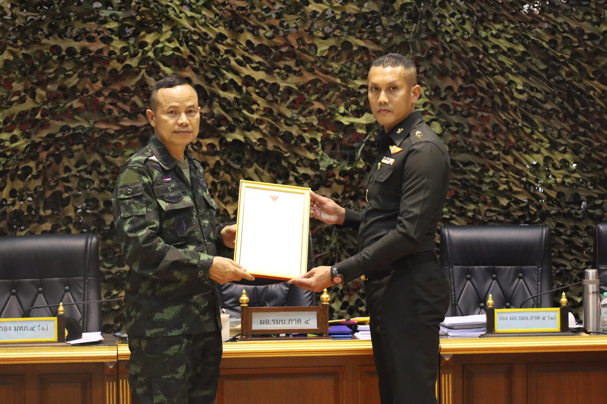 โดยก่อนเข้าสู่วาระการประชุมแม่ทัพภาคที่ 4 ได้มอบโล่รางวัลจากกองอำนวยการรักษาความมั่นคงภายในราชอาณาจักรแก่นายสมชาย ลีหล้าน้อย ผู้ว่าราชการจังหวัดนครศรีธรรมราช/ผู้อำนวยการรักษาความมั่นคงภายในจังหวัดนครศรีธรรมราช ยกย่องกองอำนวยการรักษาความมั่นคงภายในจังหวัดนครศรีธรรมราช ซึ่งผลงานเป็นที่ประจักษ์และสร้างคุณประโยชน์ต่อการกิจด้านความมั่นคง ในงานสรุปผลการปฏิบัติงานประจำปี 2568 และแถลงแผนการปฏิบัติงาน ประจำปี 2569 กอ.รมน. พร้อมมอบประกาศชมเชยหน่วยที่ปฏิบัติหน้าที่ให้การช่วยเหลือผู้ประสบอุทกภัยในพื้นที่จังหวัดสงขลา และจังหวัดในพื้นภาคใต้