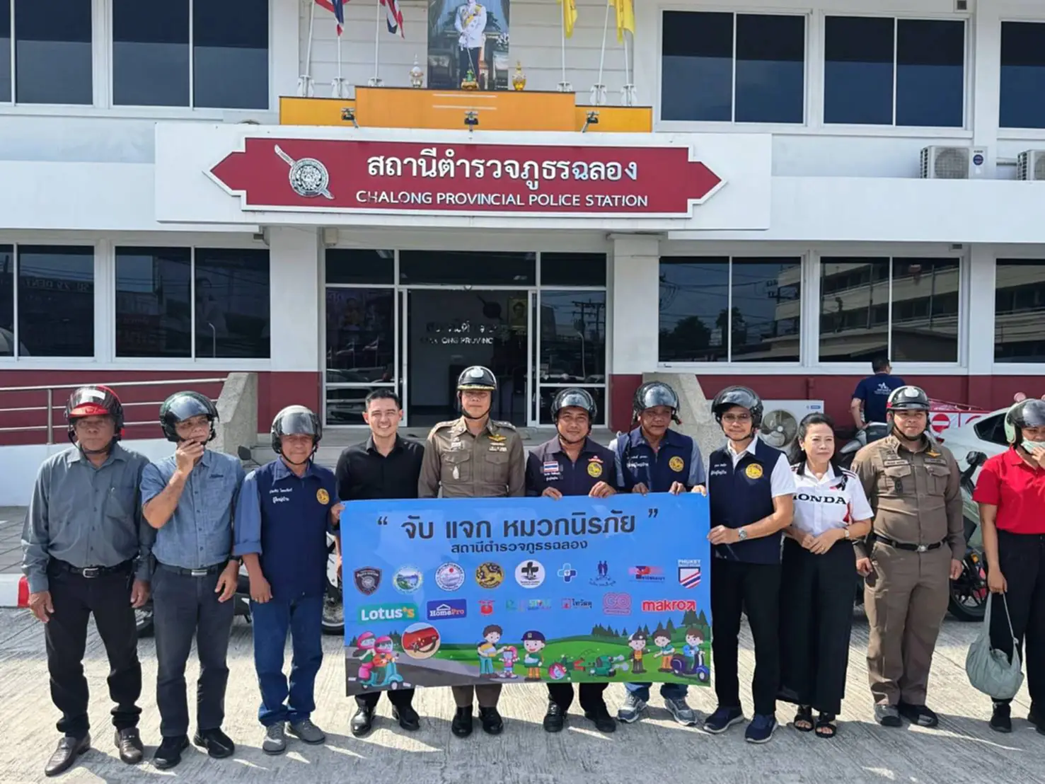 วันที่ 25 ธ.ค. 2568 สถานีตำรวจภูธรฉลอง จังหวัดภูเก็ต นำโดย พ.ต.อ.สุระศักดิ์ ใจดี ผู้กำกับการสถานี พร้อมด้วยนายเทมส์ ไกรทัศน์ นายกเทศมนตรีตำบลราไวย์ ประธาน กต.ตร. โรงพยาบาลฉลอง ภาคเอกชน และเจ้าหน้าที่ตำรวจในสังกัด ร่วมกับหน่วยงานที่เกี่ยวข้อง จัดโครงการ “จับ แจก หมวกนิรภัย” ในช่วงเทศกาลปีใหม่ 7 วัน มุ่งเน้นการป้องกันอุบัติเหตุทางถนน สร้างวินัยจราจร และส่งเสริมให้ประชาชนสวมหมวกนิรภัยทุกครั้งที่ขับขี่จักรยานยนต์