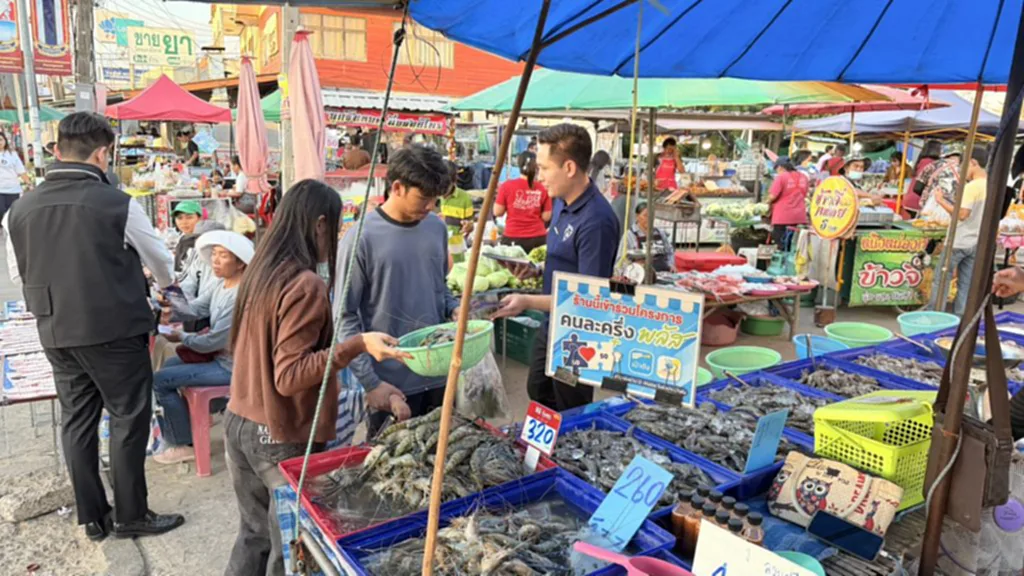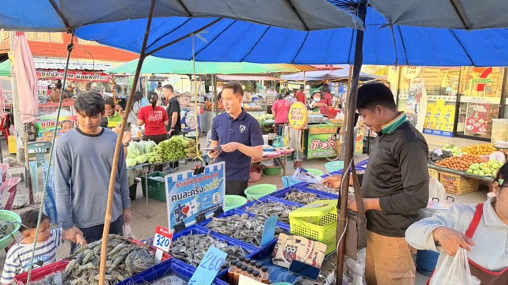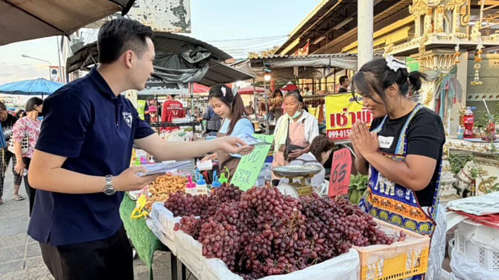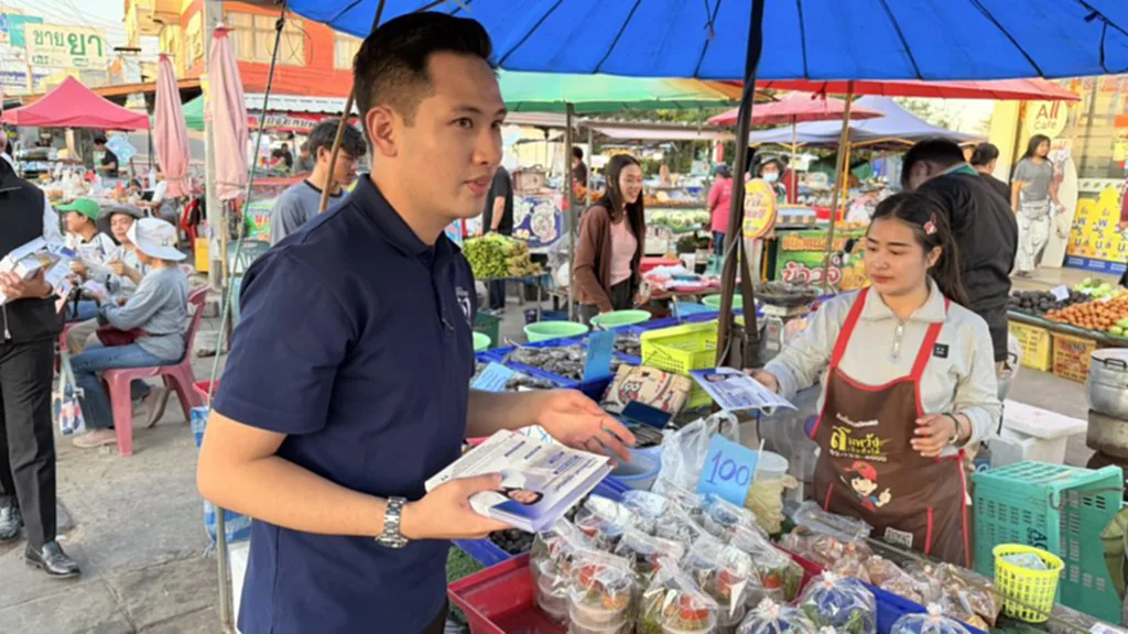 วันที่ 26 ธ.ค.68 ที่ตลาดสดเทศบาลตำบลแวงน่าง อ.เมือง จ.มหาสารคาม นายฤทธิรงค์ ภูมิสวัสดิ์ หรือ เรียกกันติดปากว่าน้องเต้ย ว่าที่ผู้สมัคร ส.ส.มหาสารคาม เขต 1 พรรคภูมิใจไทย ลงพื้นที่แจกโบรชัวร์ แนะนำตัว ฝากเนื้อ ฝากตัว พ่อๆ แม่ๆ ตลาดแวงน่าง เจ้าตัวบอกถ้าได้เบอร์แล้วจะมาหาอีก แม่ยกตลาดแวงน่าง พูดเป็นเสียงเดียวกันว่าหล่อคัก ”หล่ออีหลี“