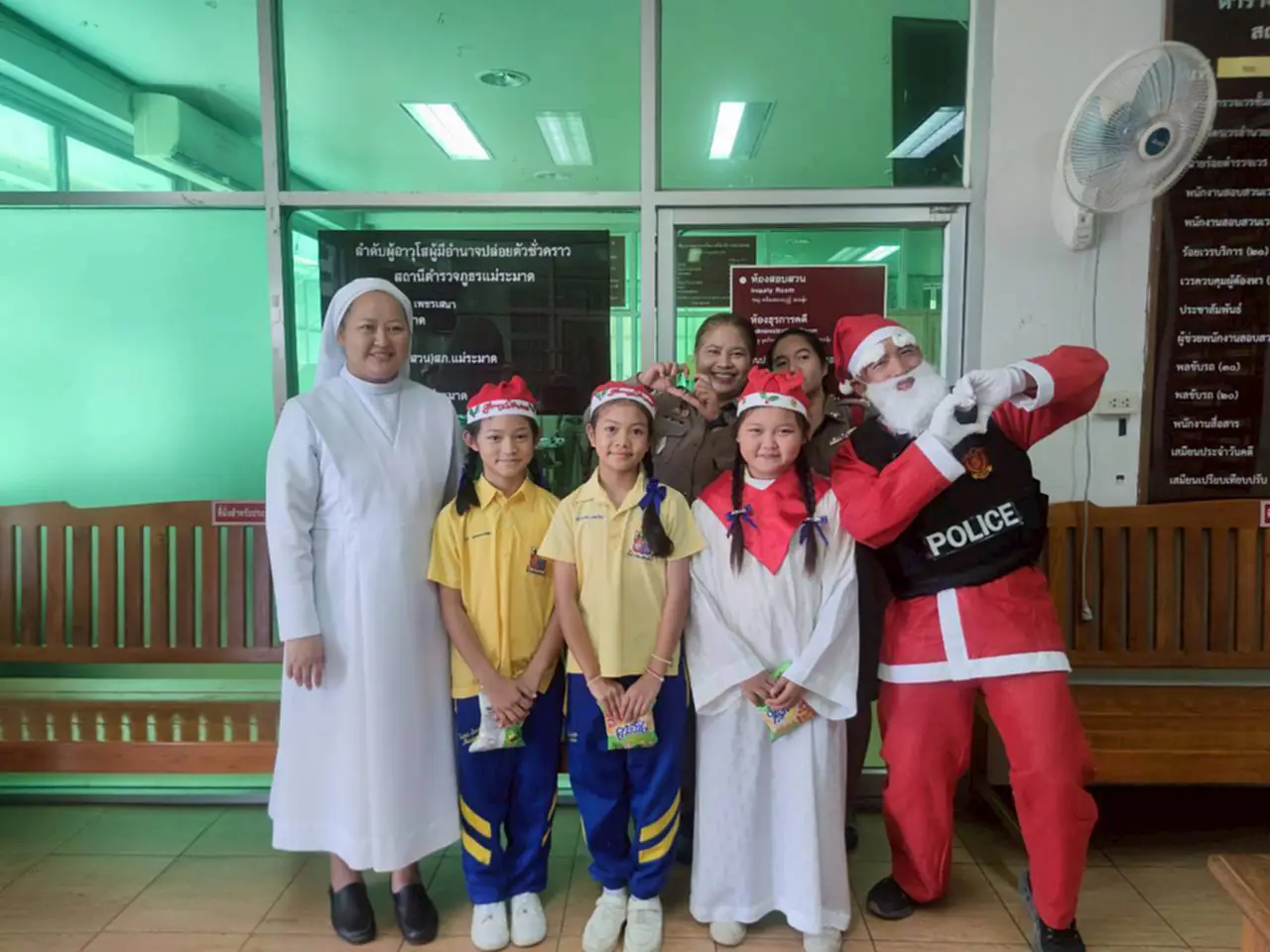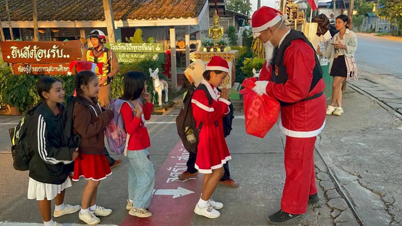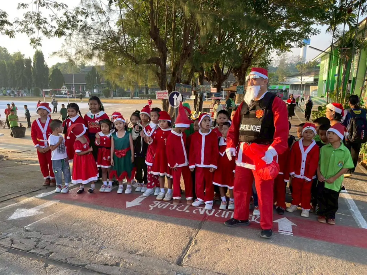 เมื่อวันที่ 25 ธ.ค. 2568 พ.ต.ท.สันติราษฎร์ แสงไชย รอง ผกก.ป.สภ.แม่ระมาด ได้แต่งตัวเป็น “ซานตาครอส” นำเจ้าหน้าที่ตำรวจ สภ.แม่ระมาด แจกของขวัญให้แก่ประชาชน/นักท่องเที่ยว แจกขนมให้เด็กนักเรียน ในเขตพื้นที่รับผิดชอบ ในโอกาสเทศกาลคริสต์มาส และปีใหม่ พร้อมประชาสัมพันธ์รณรงค์ให้ผู้ใช้รถใช้ถนน เคารพกฎจราจร มีน้ำใจแก่เพื่อนร่วมทาง การเดินทางในช่วงเทศกาลปีใหม่ 2569 นี้ สภ.แม่ระมาด ขอความร่วมมือให้ทุกท่าน ปฏิบัติตามกฎหมายจราจร โดยยึดหลัก 3 ข้อสำคัญ