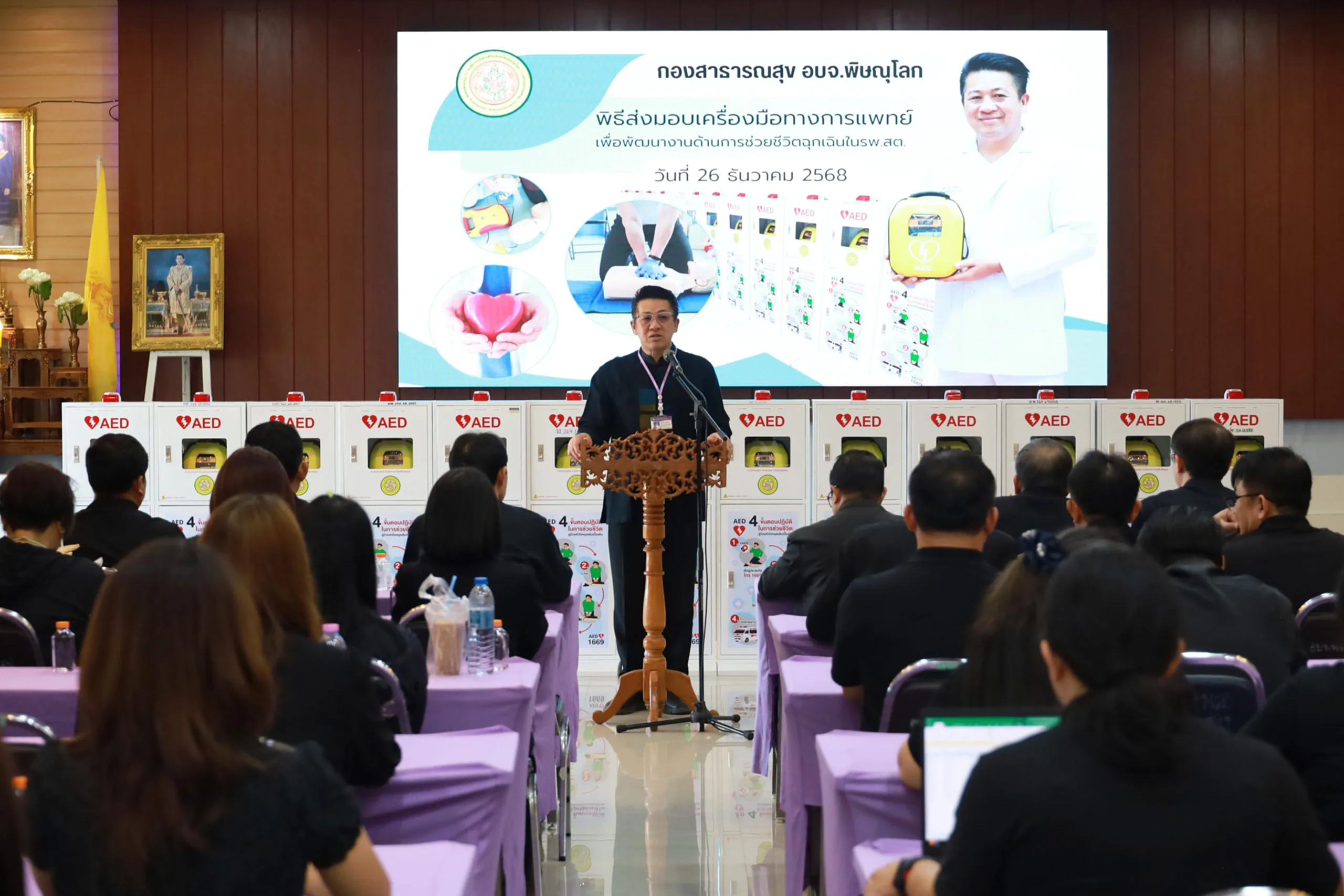 โดยมี นายสนธยา จิตต์รำพึง ผู้อำนวยการกองสาธารณสุข องค์การบริหารส่วนจังหวัดพิษณุโลก กล่าวรายงาน และได้รับเกียรติจากหัวหน้าส่วนราชการองค์การบริหารส่วนจังหวัดพิษณุโลก ร่วมพิธีมอบ ซึ่งจัดขึ้นโดยมีวัตถุประสงค์เพื่อเพิ่มศักยภาพของ รพ.สต. ในการรองรับเหตุฉุกเฉินและวิกฤตสุขภาพในระดับพื้นที่ เพื่อกระจายเครื่องมือทางการแพทย์ที่ทันสมัย ให้เข้าถึงชุมชนได้อย่างทั่วถึงและรวดเร็ว และเพื่อลดอัตราการเสียชีวิตของประชาชนจากภาวะหัวใจหยุดเต้นเฉียบพลันในพื้นที่จังหวัดพิษณุโลก