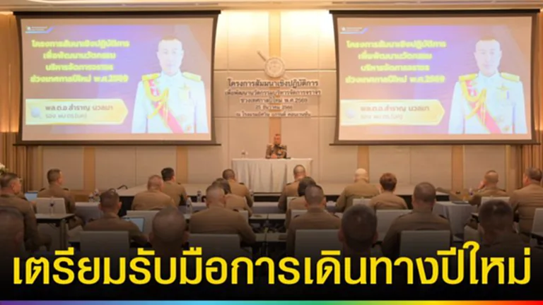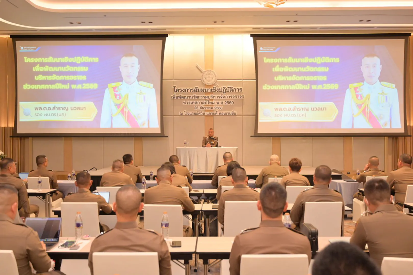 วันนี้ (25 ธันวาคม 2568) เวลา 08.30 น. พล.ต.อ.สำราญ นวลมา รองผู้บัญชาการตำรวจแห่งชาติ (รอง ผบ.ตร.) เป็นประธานในพิธีเปิดโครงการสัมมนาเชิงปฏิบัติการ “การพัฒนานวัตกรรมบริหารจัดการจราจรช่วงเทศกาลปีใหม่ พ.ศ. 2569” พร้อมมอบนโยบายการบริหารงานด้านความมั่นคงและการจราจรแก่ผู้บริหารและเจ้าหน้าที่ที่เกี่ยวข้อง โดยมี พล.ต.ท.อุดร ยอมเจริญ ผู้ช่วย ผบ.ตร. และ พล.ต.ท.นพศิลป์ พูลสวัสดิ์ ผู้บัญชาการตำรวจประจำสำนักงานผู้บัญชาการตำรวจแห่งชาติ (ทำหน้าที่ประสานงานสภาความมั่นคงแห่งชาติ) ร่วมเป็นวิทยากรถ่ายทอดนโยบาย แนวคิด และประสบการณ์ด้านการบริหารจัดการจราจรและความมั่นคง พร้อมด้วย พล.ต.ท.สมประสงค์ เย็นท้วม ผู้ช่วย ผบ.ตร. และ พล.ต.ต.พิทักษ์ อุทัยธรรม รองผู้บัญชาการตำรวจประจำสำนักงานผู้บัญชาการตำรวจแห่งชาติ ร่วมพิธีเปิดและรับฟังการมอบนโยบาย ณ โรงแรมอัศวิน แกรนด์ คอนเวนชั่น ถนนวิภาวดีรังสิต เขตหลักสี่ กรุงเทพมหานคร