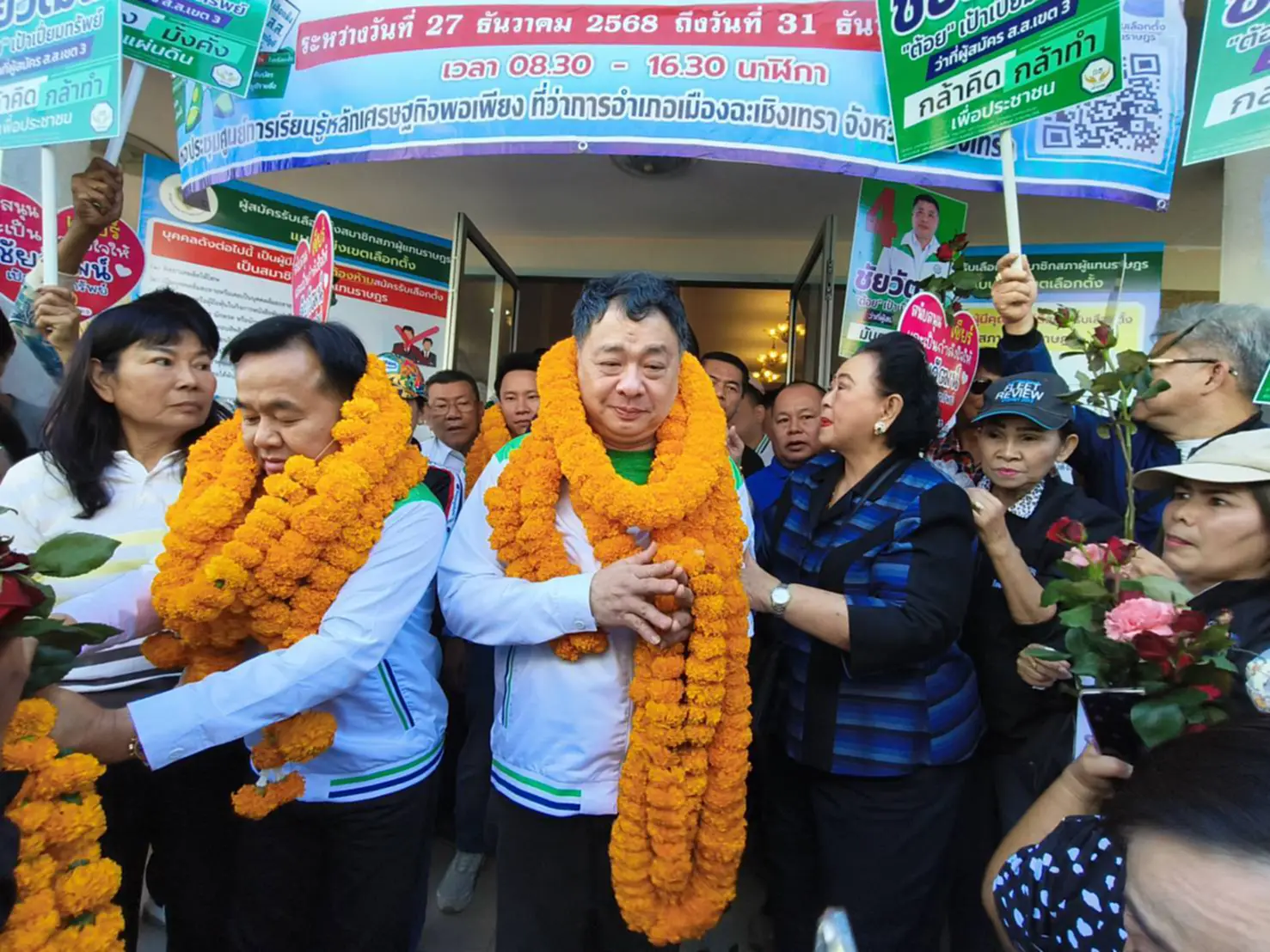 วันที่ ( 27 ธ.ค. 68) บรรยากาศการรับสมัครเลือกตั้งสมาชิกสภาผู้แทนราษฎร แบบแบ่งเขต วันแรกที่จังหวัดฉะเชิงเทรา จัดขึ้นที่ห้องประชุมศูนย์การเรียนรู้หลักเศรษฐกิจพอเพียง ที่ว่าการอำเภอเมืองฉะเชิงเทรา เริ่มขึ้นอย่างคึกคักตั้งแต่ก่อนถึงเวลาเปิดรับสมัคร มีผู้ลงสมัครรับเลือกตั้งจากหลายพรรคการเมืองใหญ่และเล็ก เดินทางมาพร้อมกองเชียร์ผู้สนับสนุนตั้งแต่เช้าก่อนเปิดรับสมัคร อาทิ นางฐิติมา ฉายแสง จากพรรคเพื่อไทย นายอรรถกร ศิริลัทธยากร จากพรรคกล้าธรรม รัฐมนตรีกระทรวงท่องเที่ยวและกีฬา จ่าเอกยศสิงห์ เหลี่ยมเลิศ จากพรรคกล้าธรรม รัฐมนตรีช่วยอุตสาหกรรม นอกจากนี้ยังมีนักการเมืองรุ่นเก๋า อย่างนายจาตุรนต์ ฉายแสง นายสมชัย อัศวชัยโสภณ และนายอิทธิ ศิริลัทยากร เดินทางมาให้กำลังใจผู้สมัครด้วย ซึ่งผู้สมัครแต่ละรายหวังได้หมายเลขเป็นลำดับต้น ๆ ซึ่งถือเป็นฤกษ์ดี การลงสมัครรับเลือกตั้งในวันแรก จึงเดินทางมากันตั้งแต่เช้าก่อนจะเปิดการรับสมัคร