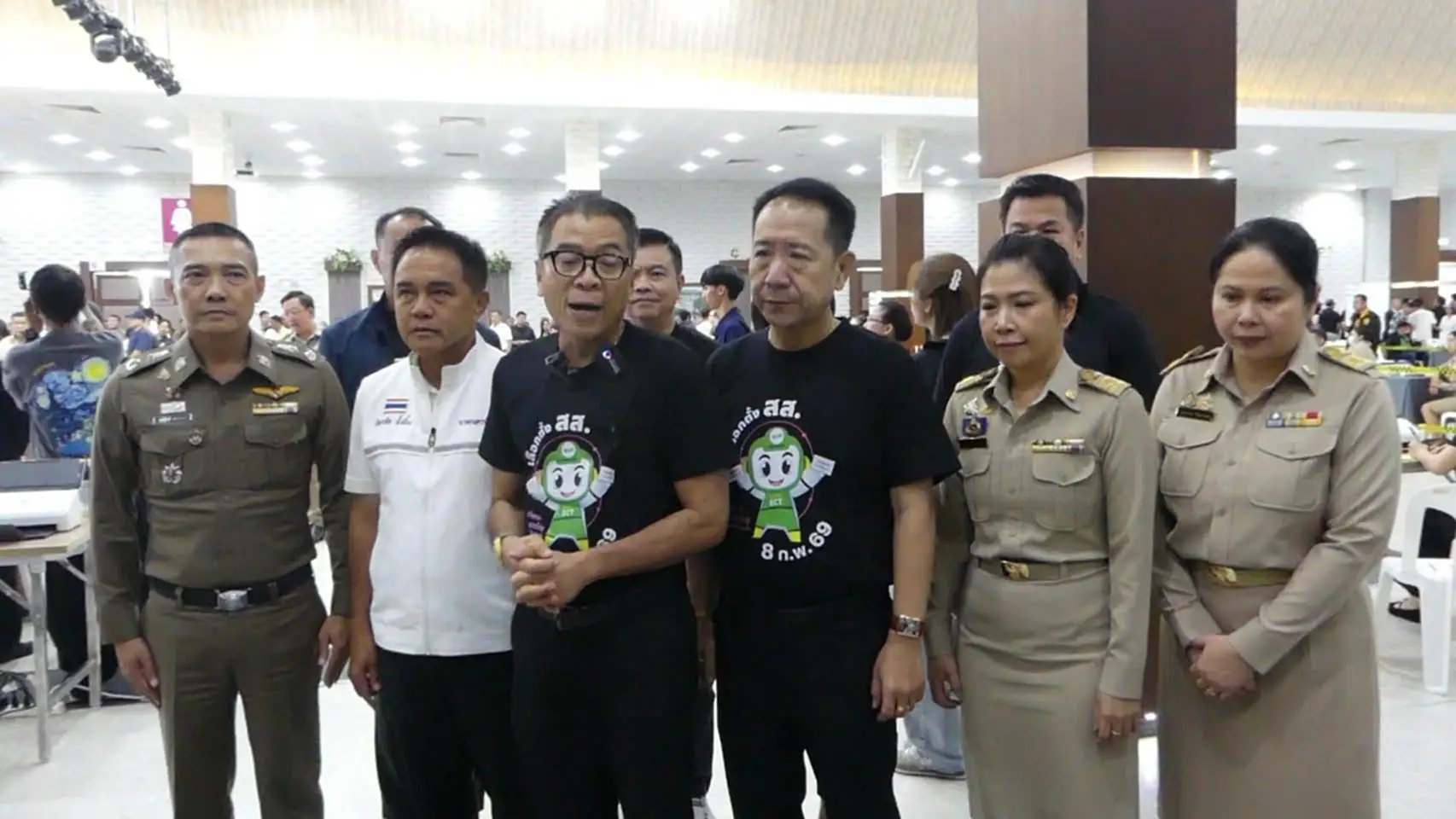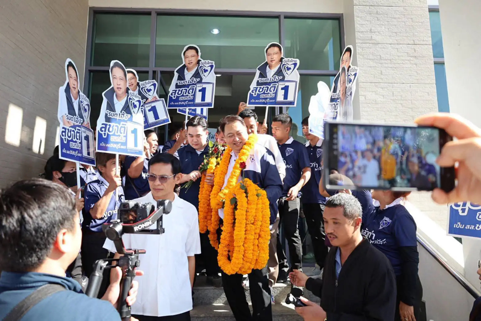 โดยที่บรรยากาศด้านนอกของที่รับสมัคร สมาชิกสภาผู้แทนราษฎรจังหวัดชลบุรีได้มีกองเชียร์ของแต่ละพรรคได้ส่งเสียงเชียร์กันเป็นระยะพร้อมเตดดอกไม้พวงมาลัย ไว้ให้กับพรรคตัวเองทำให้บรรยากาศวันรับสมัครในวันแรก เป็นไปด้วยความครึกครื้นโดยที่จะมีการรับสมัครไปถึงวันที่ 31 ธันวาคม 2568 และจะมีการเลือกตั้งในวันอาทิตย์ที่8กุมภาพันธ์ 2569ขณะที่ไอซ์ รัชชนกได้เดินทางมาที่อาคารยืนให้กำลังใจนายสุชาติ ชมกลิ่นว่าที่ผู้สมัคร สส.ชลบุรีเขต 1 เบอร์ 1 และมีการถ่ายรูปร่วมกันหยอกล้อกันโดยไอซ์ รัชชนกแอบแซวรองเฮ้ง หากเขต 1 ไม่ได้ก็เลิกเล่นเลยนะ