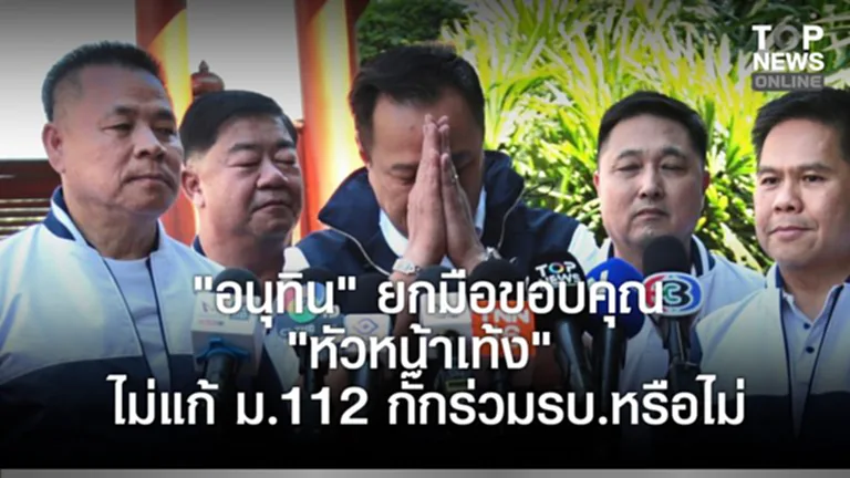 เมื่อเวลา 14.10 น. วันที่ 27 ธ.ค. ที่จังหวัดสุพรรณบุรี นายอนุทิน ชาญวีรกูล นายกรัฐมนตรีและรมว.มหาดไทย ในฐานะหัวหน้าพรรคภูมิใจไทย ให้สัมภาษณ์ถึงกรณี นายณัฐพงษ์ เรืองปัญญาวุฒิ หัวหน้าพรรคประชาชน(ปชน.) ระบุว่าพรรคประชาชนไม่มีนโยบายในการแก้ไขมาตรา 112 แล้ว โดยนายอนุทิน ย้อนถามว่า “ท่านหัวหน้าเท้งพูดแล้วหรอ ยืนยันได้หรือเปล่าไม่รู้ เหมือนว่าตัวท่านพูดว่าพรรคประชาชนไม่แก้มาตรา 112 ด้วย โอ้โห ขอบพระคุณมากครับ“ พร้อมกับยกมือขึ้นไหว้ และกล่าวอีกว่าขอบพระคุณท่านจริงๆ ประเทศเรา ยิ่งเป็นความสบายใจของพี่น้องประชาชน