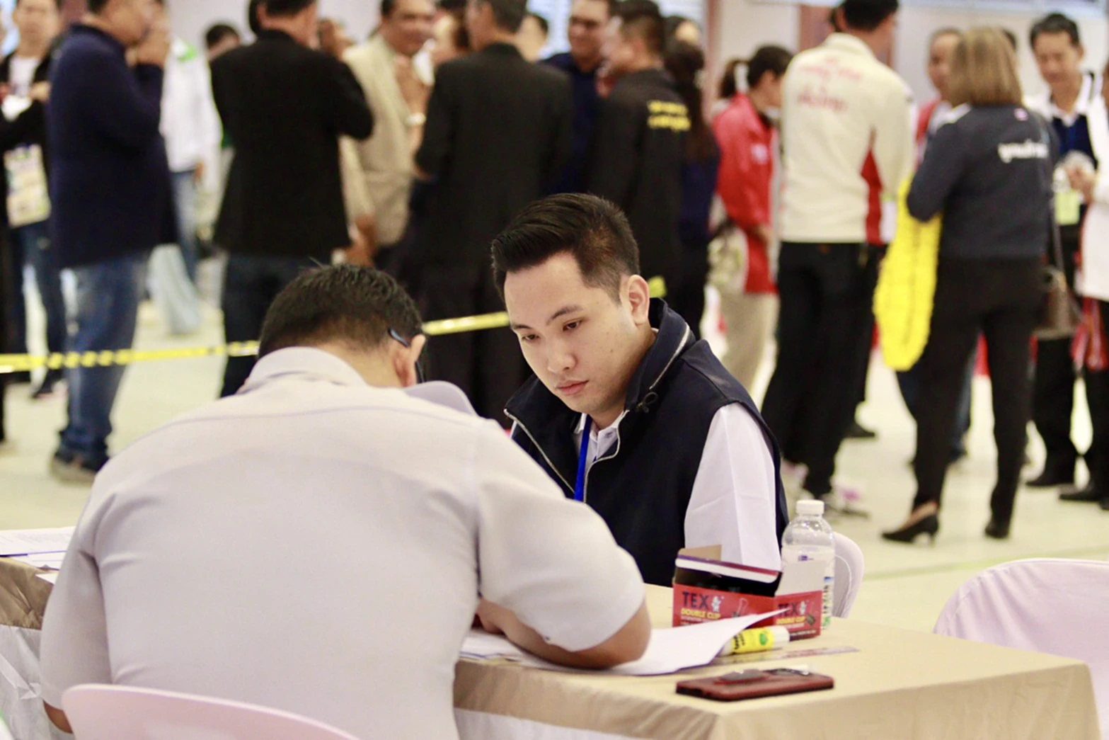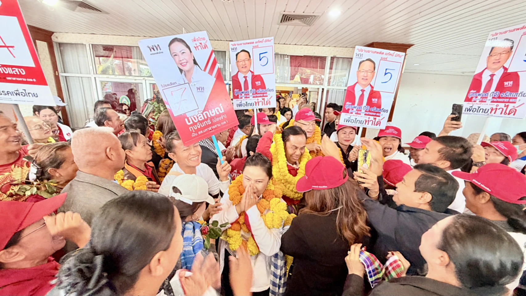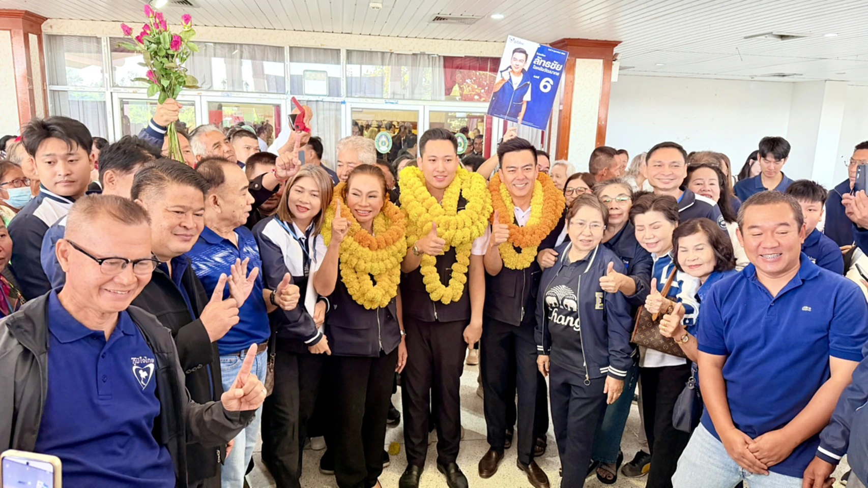 วันที่ 27 ธ.ค. 2568 ที่หอประชุมมหาวิทยาลัยราชภัฏมหาสารคาม บรรยากาศการรับสมัครสมาชิกสภาผู้แทนราษฎร (สส.) จังหวัดมหาสารคาม ทั้ง 6 เขต เป็นไปอย่างคึกคัก ตั้งแต่ช่วงเช้ามีผู้สมัครพร้อมกองเชียร์เดินทางมาร่วมให้กำลังใจกันอย่างต่อเนื่อง โดยกองเชียร์ของผู้สมัครแต่ละรายได้ส่งเสียงตะโกนและแสดงสัญลักษณ์เชียร์ผู้สมัครของตนเอง สร้างสีสันให้กับบรรยากาศโดยรอบสถานที่รับสมัคร