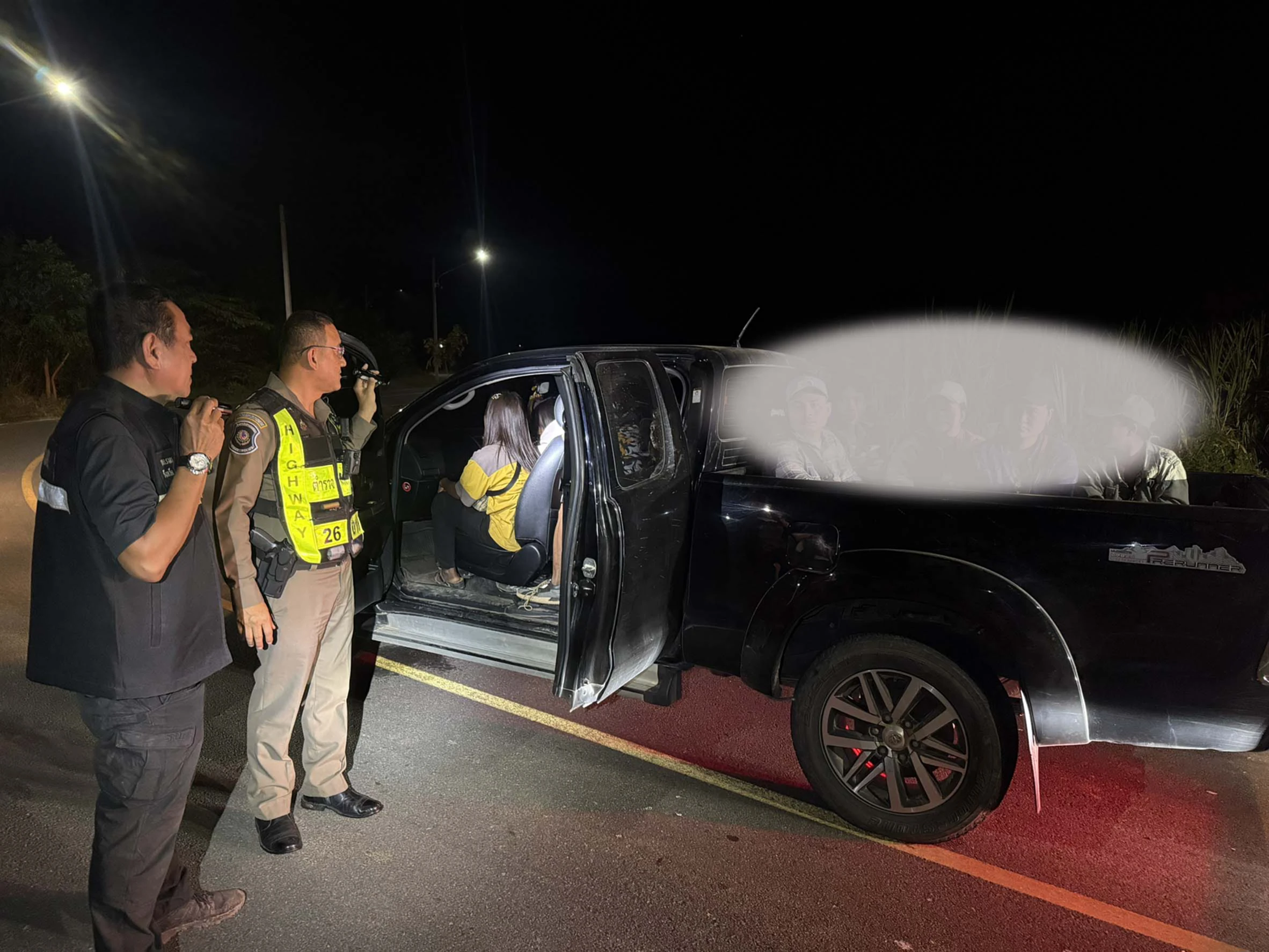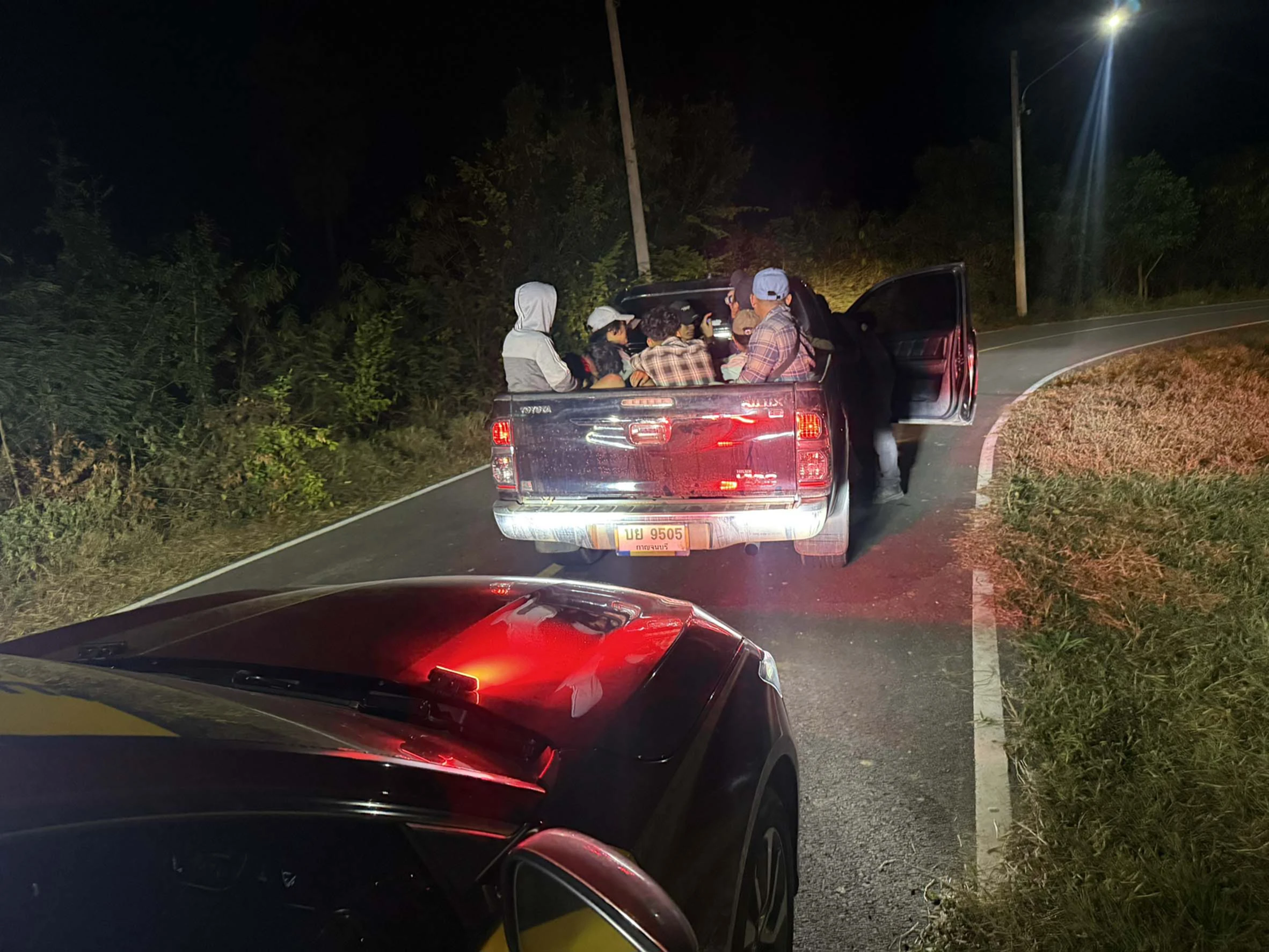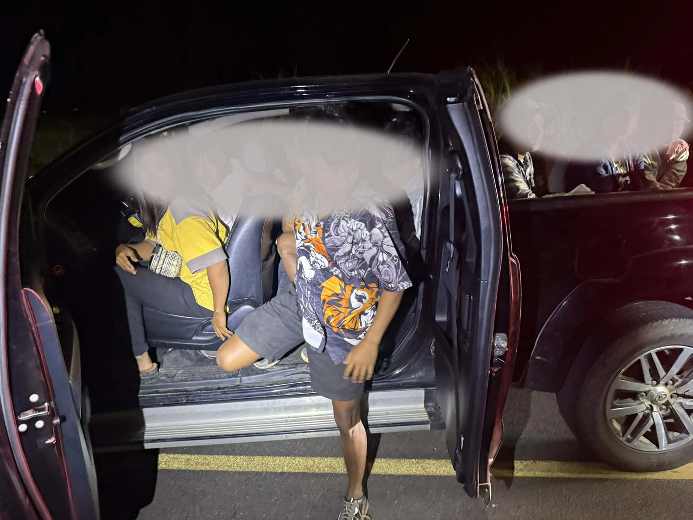 กาญจนบุรี/จับแอบขนต่างด้าวเช้ามืด ตร.ทางหลวงไล่กวดข้ามอำเภอคนขับทิ้งรถหลบหนี ทิ้งต่างด้าว 14 คน