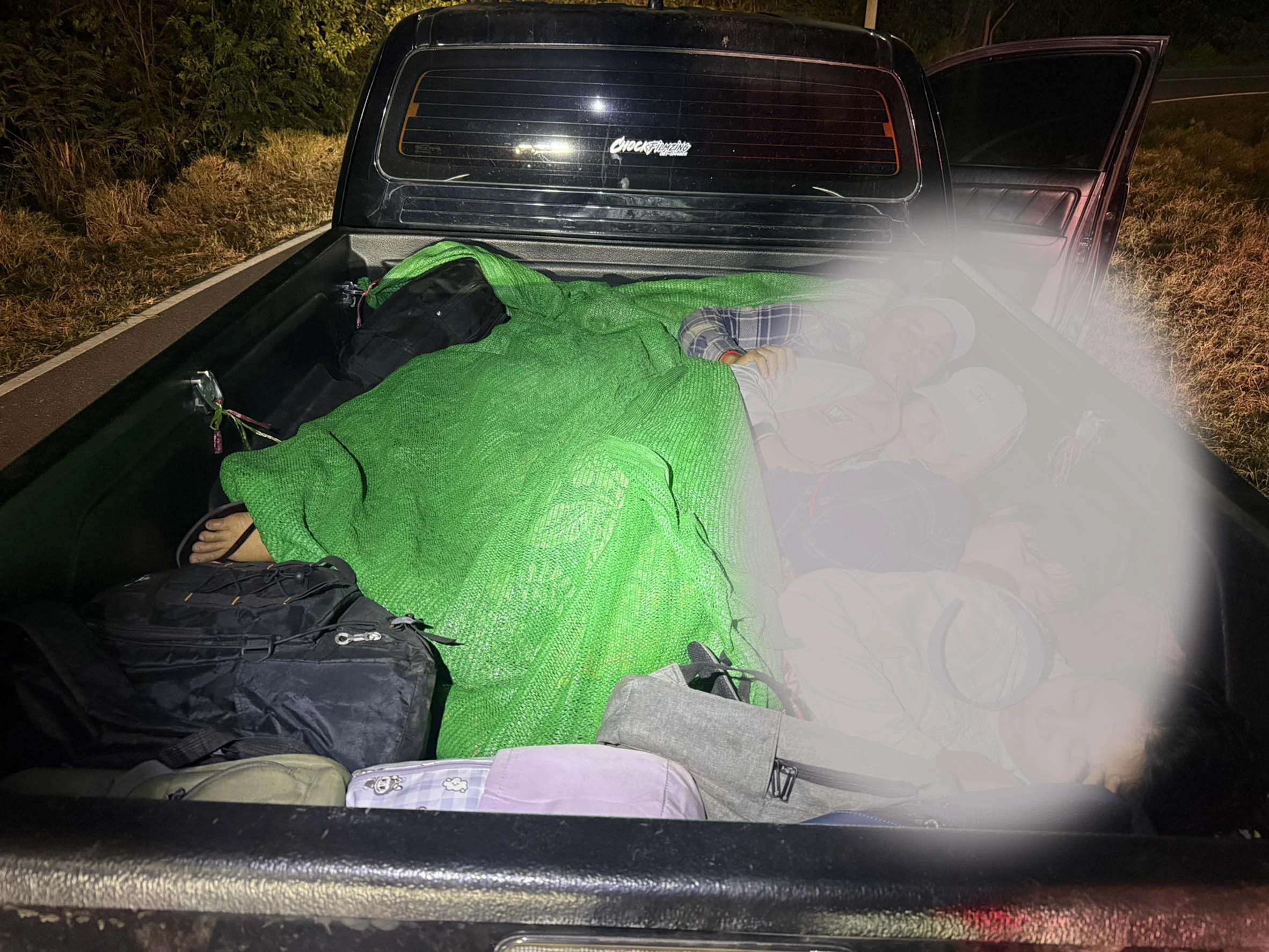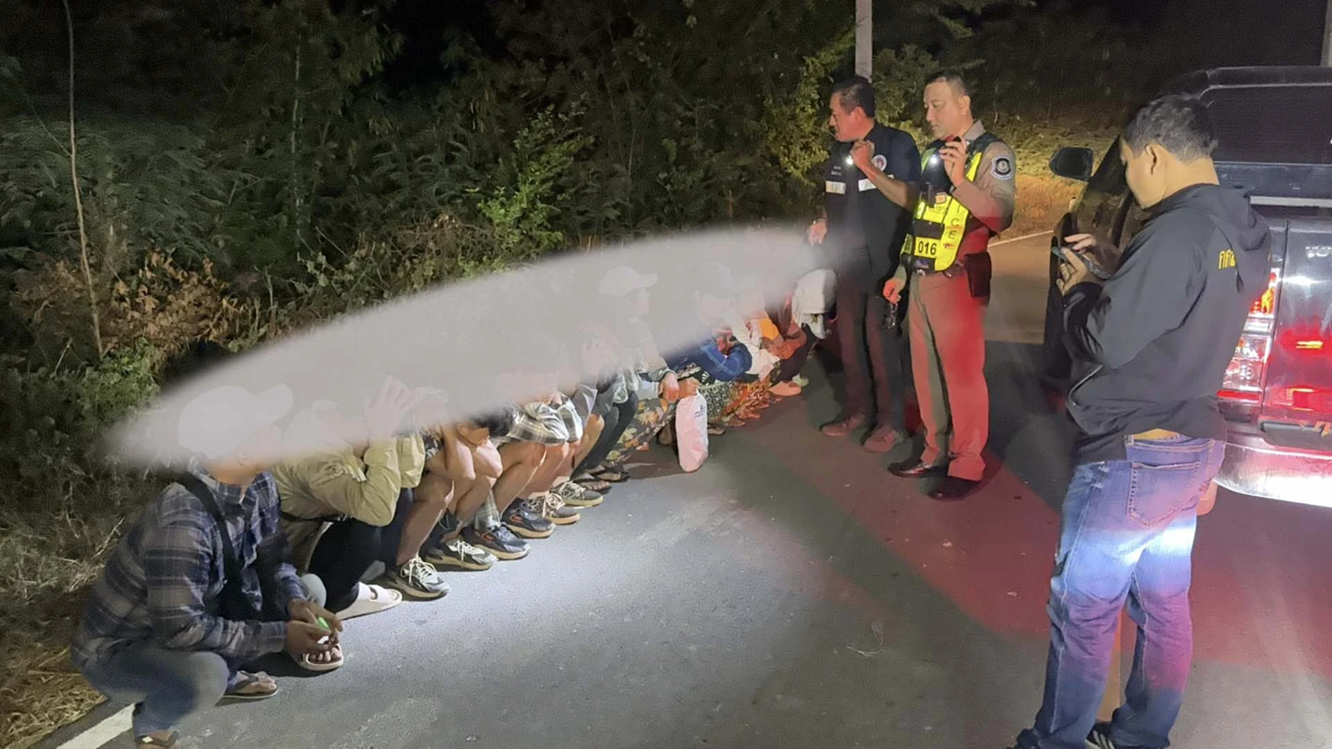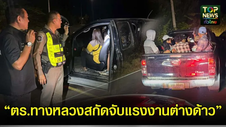 กาญจนบุรี/จับแอบขนต่างด้าวเช้ามืด ตร.ทางหลวงไล่กวดข้ามอำเภอคนขับทิ้งรถหลบหนี ทิ้งต่างด้าว 14 คน