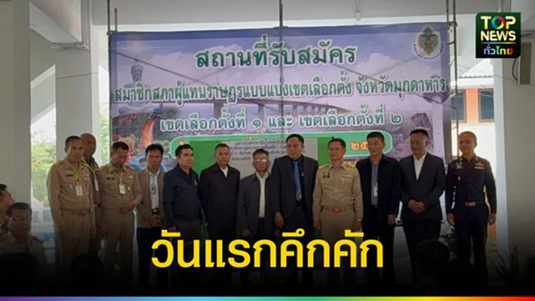 เปิดรับสมัคร สส.มุกดาหาร วันแรก มีผู้สนับสนุนและกองเชียร์มาให้กำลังใจคึกคัก ส่วนพรรคใหญ่ส่งผู้สมัครครบทั้ง 2 เขต โดยจะมีการเลือกตั้ง สส. ในวันที่ 8 กุมภาพันธ์ 2569
