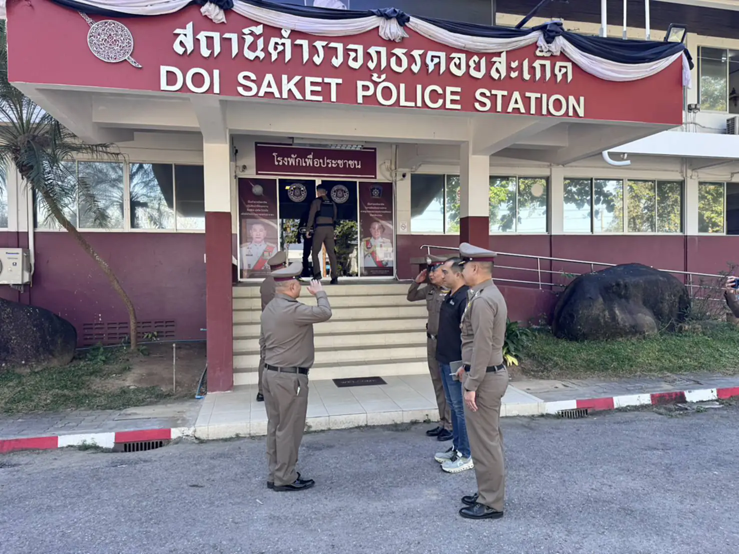 เมื่อวันที่ 27 ธันวาคม 2568 พ.ต.อ.สมชาย เขียวจักร์ รองผู้บังคับการตำรวจภูธร จ.เชียงใหม่ ลงพื้นที่ สภ.ดอยสะเก็ด เพื่อตรวจเยี่ยมให้กำลังใจกำลังพล พร้อมมอบนโยบายในการดูแลประชาชนช่วงเทศกาลปีใหม่ โดยมี พ.ต.อ.ศุภชัย จันทรา ผกก.สภ.ดอยสะเก็ด, พ.ต.ท.วิมล วงศ์สิงห์, รอง ผกก.ป.สภ.ดอยสะเก็ด พร้อมกำลังข้าราชการตำรวจ ได้การต้อนรับ โอกาสนี้ พ.ต.อ.สมชาย เขียวจักร์ รองผู้บังคับการตำรวจภูธร จ.เชียงใหม่ ได่ร่วมพูดคุยและกำชับการปฏิบัติหน้าที่ดังนี้