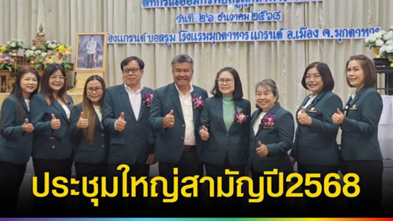วันที่ 27 ธ.ค. 68 ที่ชั้น 2 ห้องประชุมแกรนด์บอลรูม โรงแรมมุกดาหาร แกรนด์ โฮเทล อำเภอเมือง จังหวัดมุกดาหาร นายโสภณ แก่นงาม ประธานกรรมการสหกรณ์ออมทรัพย์ครูมุกดาหาร จำกัด เป็นประธานเปิดการประชุมใหญ่สามัญปี 2568 โดยมีคณะกรรมการดำเนินการ ชุดที่ 42 สหกรณ์ออมทรัพย์ครูมุกดาหาร จำกัด , คณะกรรมการสหกรณ์ออมทรัพย์ครูนครราชสีมา จำกัด,คณะกรรมการสหกรณ์ออมทรัพย์ครูมหาสารคาม จำกัด ,คณะกรรมการสหกรณ์ออมทรัพย์ครูกาฬสินธุ์ จำกัด และสมาชิกสหกรณ์ออมทรัพย์ครูมุกดาหาร จำกัด รวม 11 หน่วย เข้าร่วมในครั้งนี้จำนวน 500 คน