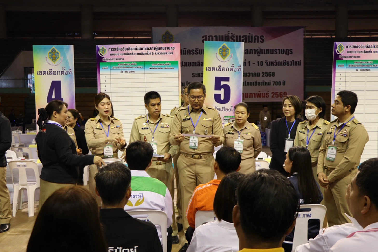 วันที่ 27 ธันวาคม 2568 ที่ โรงยิม 2 สนามกีฬาสมโภชเชียงใหม่ 700 ปี จังหวัดเชียงใหม่ บรรยากาศการรับสมัครรับเลือกตั้งสมาชิกสภาผู้แทนราษฎรทั้งหมด 10 เขต คึกคักตั้งแต่ช่วงเช้า บรรดาผู้สมัครและผู้สนับสนุนกองเชียร์พากันเดินทางมาตั้งแต่ก่อนเวลา 07.00 น. โดยเฉพาะผู้สมัครแต่ละพรรค ได้ทะยอยมาลงชื่อลงและตรวจเอกสารเตรียมความพร้อม ก่อนเวลา 08.30 น ก่อนยื่นใบสมัครตามเวลาที่คณะกรรมการการเลือกตั้งประจำจังหวัดเชียงใหม่กำหนดไว้ ซึ่งมีหลายพรรคการเมืองมีแกนนำคนสำคัญมาร่วมส่งผู้รับสมัครในวันนี้
