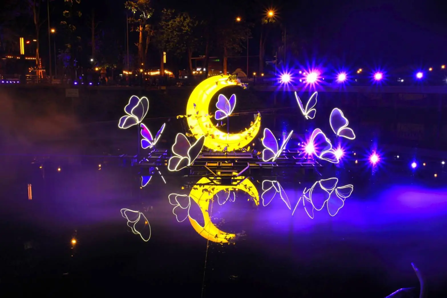 บรรยากาศยามค่ำคืนเต็มไปด้วยความสวยงามและอบอวลไปด้วยแสงสีสัน มีประชาชนและนักท่องเที่ยวจำนวนมากเดินทางมาร่วมถ่ายภาพ เช็คอิน และเยี่ยมชมความงดงามของการจัดแสดงบริเวณรอบสวนศรีเมืองอย่างคึกคัก สร้างความประทับใจให้กับผู้ร่วมงานเป็นอย่างมาก