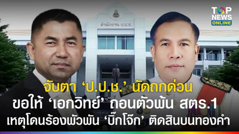 จับตา “ป.ป.ช.” นัดถกด่วน ขอให้ “เอกวิทย์” ถอนตัวพ้น สตร.1 เหตุโดนร้องพัวพัน “บิ๊กโจ๊ก” ติดสินบนทองคำ