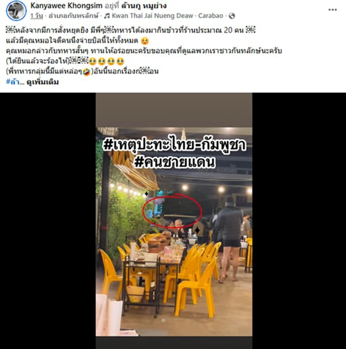 เรื่องราวสุดประทับใจ ทหารจากชายแดน ลงมากินข้าวที่ อ.กันทรลักษ์ หลังจากมีการสั่งหยุดยิง เจอคุณหมอใจดีจ่ายบิลให้ทั้งหมด