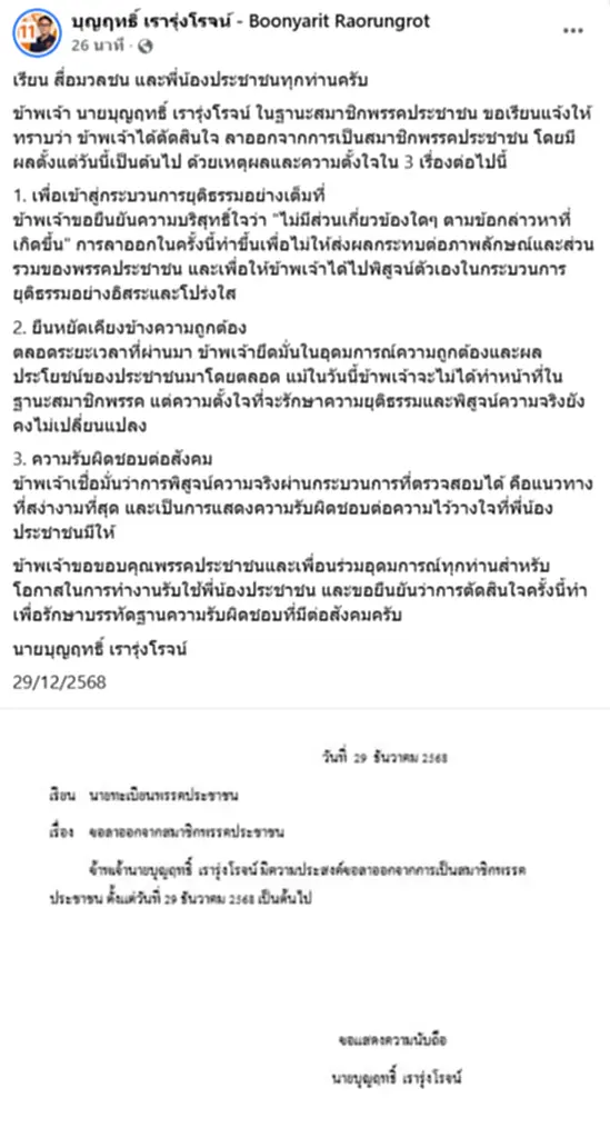 ทั้งนี้มีรายงานว่า สส.ที่ถูกออกหมายจับนั้น คือ นายบุญฤทธิ์ เรารุ่งโรจน์ ผู้สมัคร สส. เขตบางพลัด-บางกอกน้อย สส. ของพรรคประชาชน เขต 33 ซึ่งต่อมาทางพรรคประชาชนเอง ได้แถลงชี้แจงในเรื่องที่เกิดขึ้นแล้ว