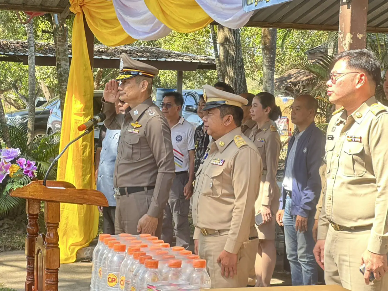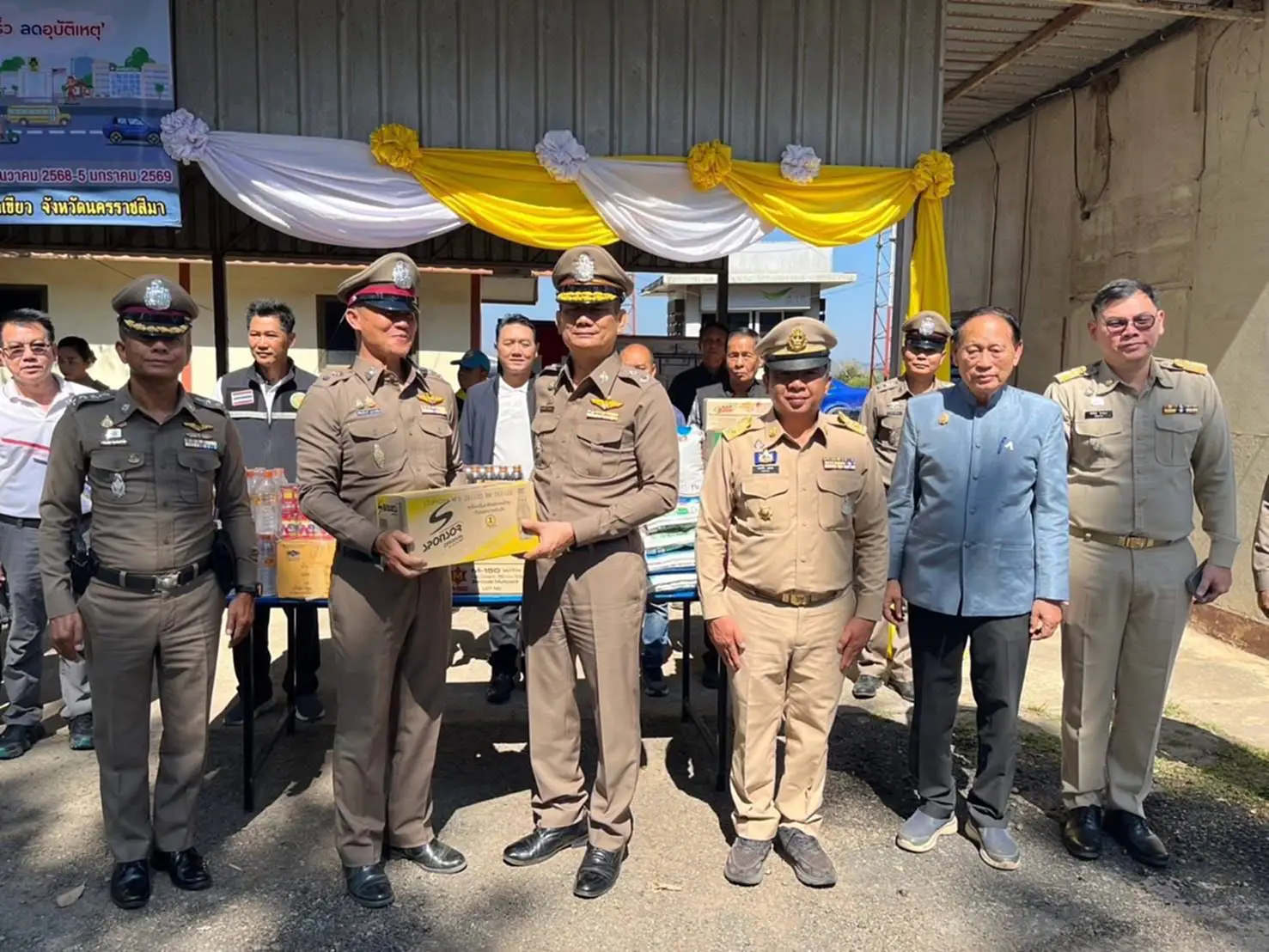 วันที่ 30 ธันวาคม 2568 เวลา 11:40 น. ที่บริเวณจุดตรวจจุดสกัด สถานีตำรวจภูธรวังน้ำเขียว ถนนสาย 304 วังน้ำเขียว-ปราจีนบุรี ขาเข้านครราชสีมา อ.วังน้ำเขียว จ.นครราชสีมา พล.ต.ต.ณรงค์ศักดิ์ พรหมทา ผบก.ภ.จว.นครราชสีมา ร่วมกับ นายเทอดไท แสงผล นายอำเภอวังน้ำเขียว พ.ต.อ.วีรพล ระเบียบโพธิ์ ผกก.สภ.วังน้ำเขียว คณะกรรมการที่ปรึกษาการแสวงหาความร่วมมือภาคประชาชน กำนันผู้ใหญ่ ผู้นำชุมชน ทีมจิตอาสาเพื่อสังคมชุมชน ชมรมจักรยานเพื่อการท่องเที่ยววังน้ำเขียว