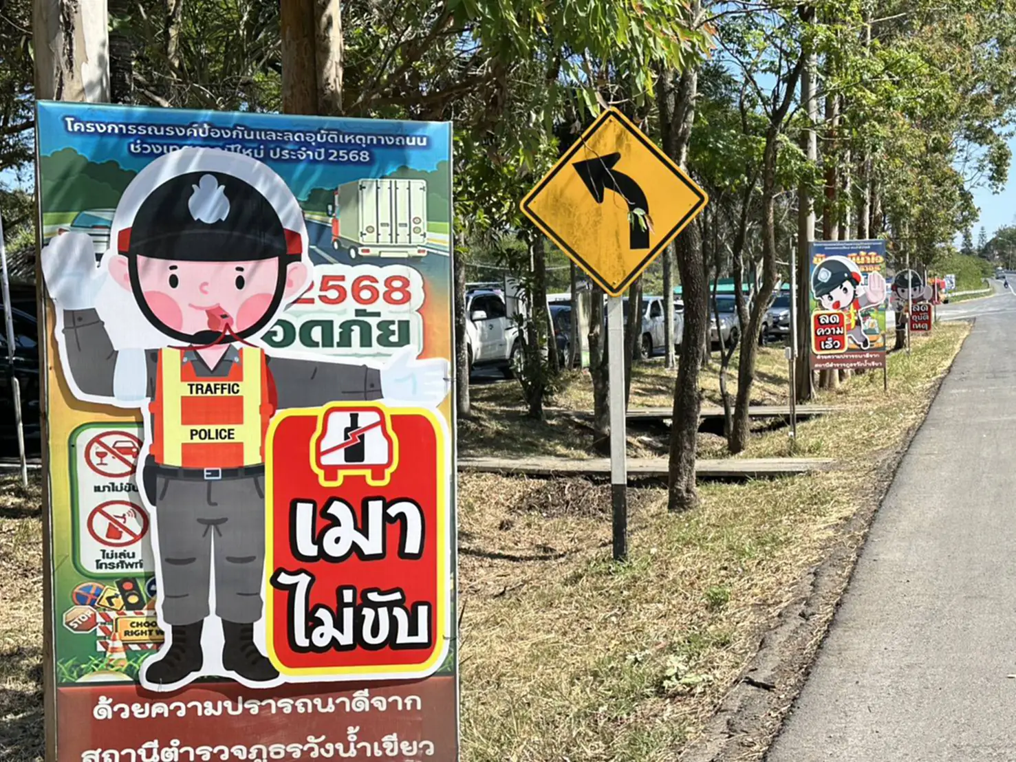 ร่วมกันเปิดศูนย์บริการประชาชนช่วงเทศกาลปีใหม่ อำเภอวังน้ำเขียว โดยมีการตรวจความพร้อมของเจ้าหน้าที่ทุกภาคส่วน ในการดูแลประชาชนเดินทางกลับภูมิลำเนา ซึ่ง สภ.วังน้ำเขียว ได้มีการติดตั้งป้ายประชาสัมพันธ์รณรงค์ลดอุบัติปีใหม่ 2569 โดยไอเดียกระฉูดคือ การทำป้ายเป็นรูปตัวการ์ตูนตำรวจจราจร พร้อมข้อความ รณรงค์ลดอุบัติปีใหม่ และป้ายขนาดใหญ่ความยาว 13 เมตร ลายธงชาติไทย ด้วยข้อความ สวัสดีปีใหม่ ขับขี่ปลอดภัย ส่งกำลังใจ ให้แนวหน้า บนสะพานลอยขาเข้าโคราช