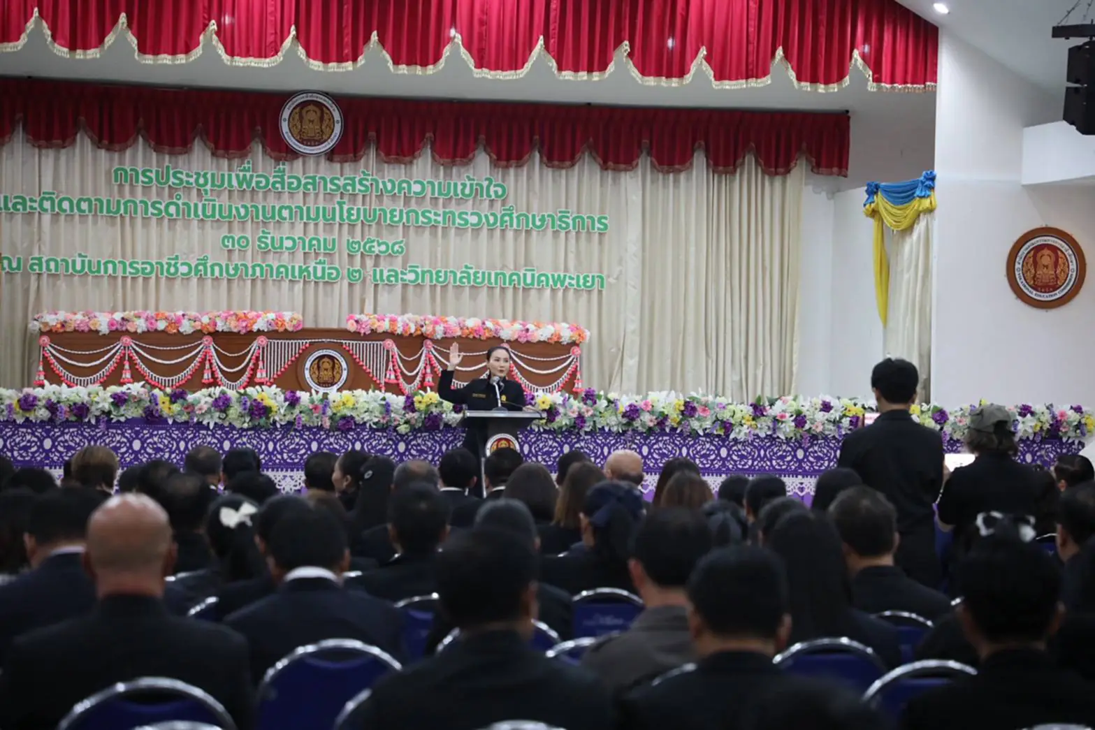 เมื่อวันที่ 30 ธันวาคม 2568 ศาสตราจารย์ ดร.นฤมล ภิญโญสินวัฒน์ รัฐมนตรีว่าการกระทรวงศึกษาธิการ พร้อมด้วยคณะผู้บริหารระดับสูงของกระทรวงศึกษาธิการ อาทิ นายบุญสิงห์ วรินทร์รักษ์ ที่ปรึกษารัฐมนตรีว่าการกระทรวงศึกษาธิการ นายสุเทพ แก่งสันเทียะ ปลัดกระทรวงศึกษาธิการ นายพิเชฐ โพธิ์ภักดี เลขาธิการคณะกรรมการการศึกษาขั้นพื้นฐาน และนางเกศทิพย์ ศุภวานิช อธิบดีกรมส่งเสริมการเรียนรู้ ลงพื้นที่ตรวจราชการ ณ วิทยาลัยเทคนิคพะเยา และโรงเรียนอนุบาลพะเยา จังหวัดพะเยา เพื่อติดตามการดำเนินงานด้านการศึกษา และรับฟังความคิดเห็นจากผู้บริหาร ครู และบุคลากรทางการศึกษาในพื้นที่