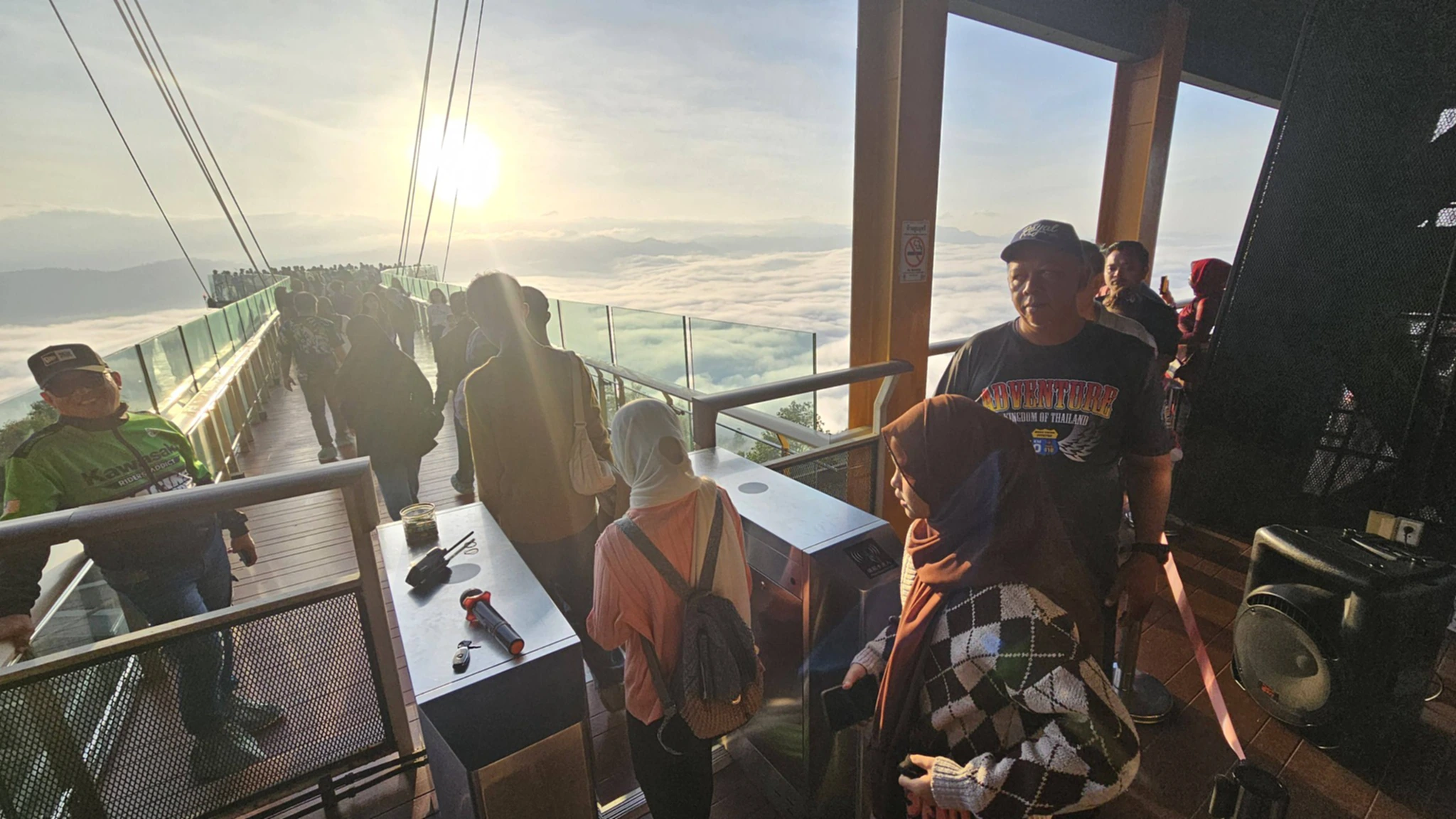 บรรยากาศภายในป่านันทนาการเต็มไปด้วยนักท่องเที่ยวทั้งชาวไทยและต่างชาติที่มาถ่ายภาพเก็บไว้เป็นที่ระลึก โดยเฉพาะจุดชมวิวทะเลหมอกซึ่งมองเห็นวิวผืนป่าฮาลา-บาลา และขุนเขาเขียวที่เรียงรายสลับซับซ้อน เห็นทะเลหมอกเต็มท้องฟ้าในมุมสูงแบบ 360 องศา นอกจากนี้ยังมีสกายวอล์กพื้นกระจกใสให้นักท่องเที่ยวเดินชมทะเลหมอกและทิวทัศน์โดยรอบอย่างเต็มตา ท่ามกลางอุณหภูมิ 20-21 องศาเซลเซียส ทำให้หลายครอบครัวเลือกใช้เวลาร่วมกันถ่ายรูปและพักผ่อนท่ามกลางบรรยากาศธรรมชาติที่สงบและสดชื่น