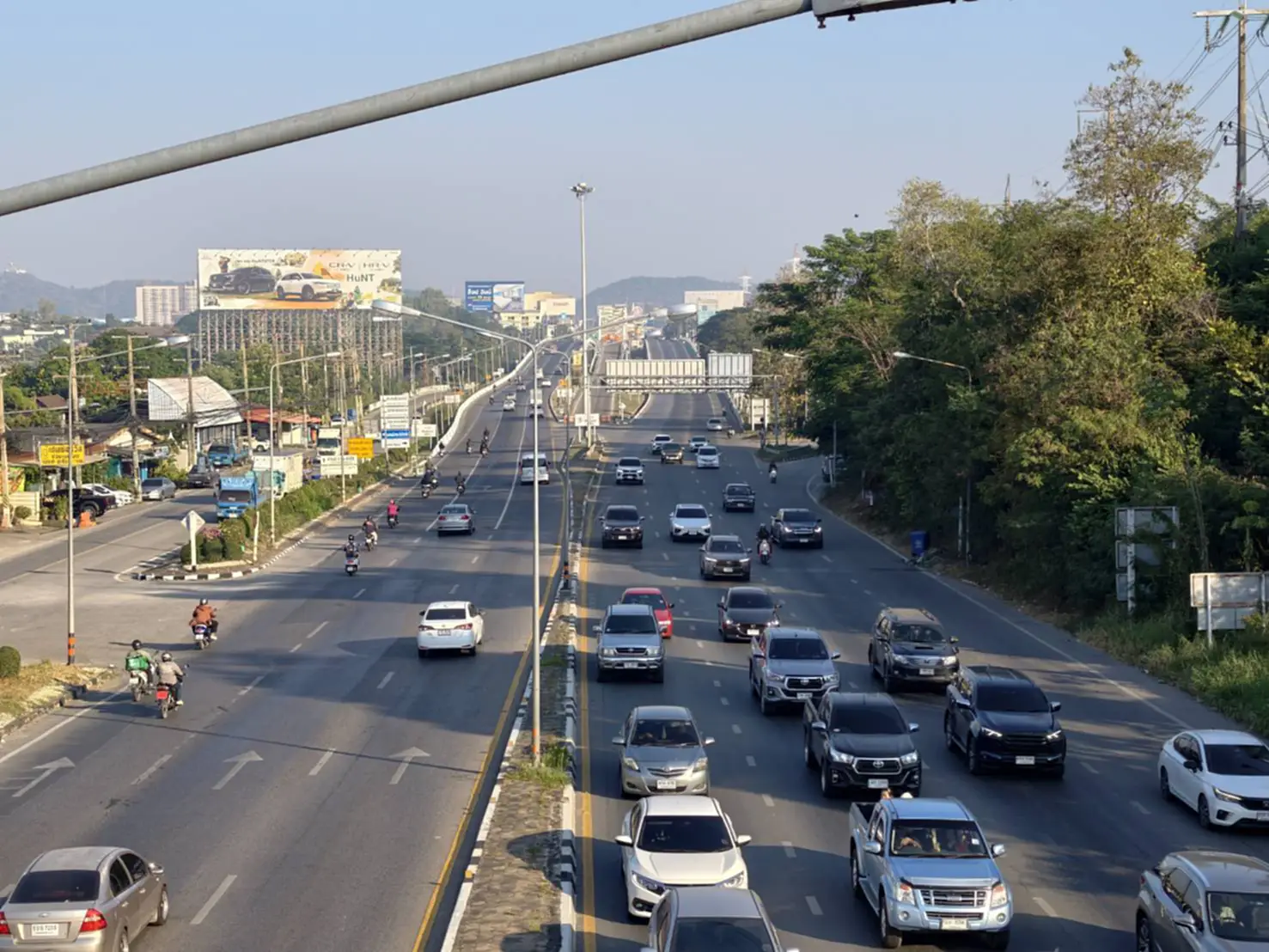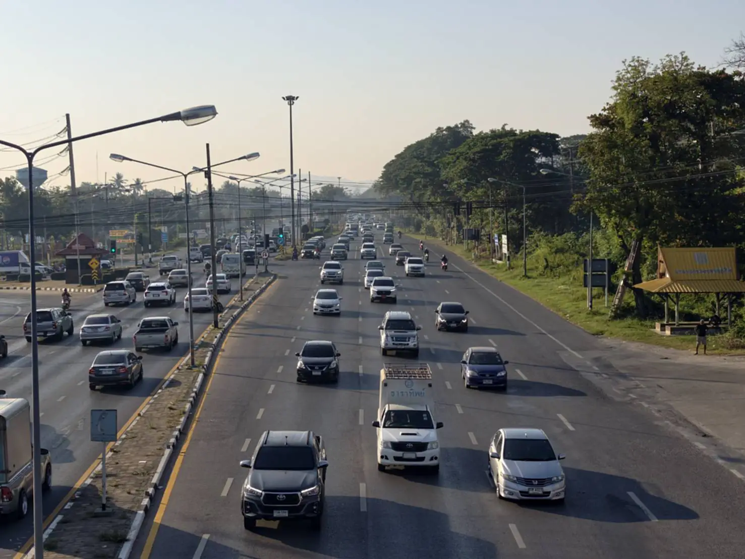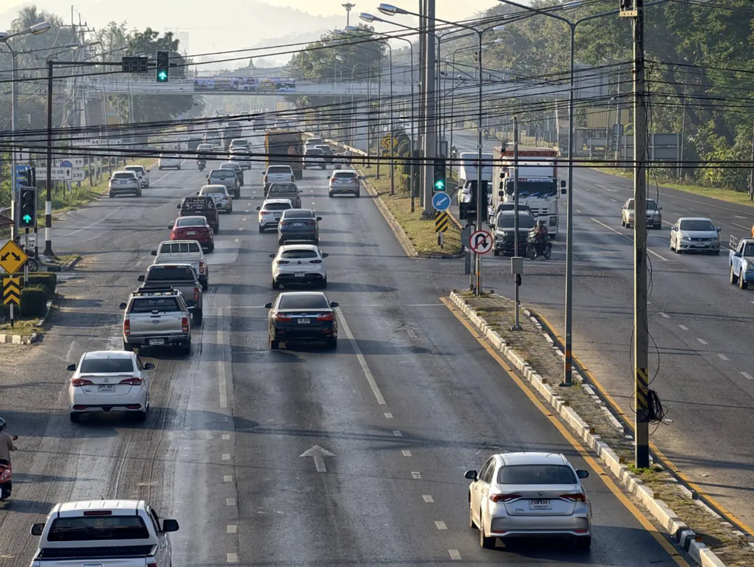ขณะที่บริเวณแยกหน้าค่ายจิระประวัติจนถึงสะพานเดชาติวงศ์ มีปริมาณรถเป็นจำนวนมากทำให้การจราจรบางช่วงติดขัดช่วงสัญญาณไฟแดงตามทางแยกต่างๆ แต่ยังไม่มีท้ายแถวรถติดสะสม