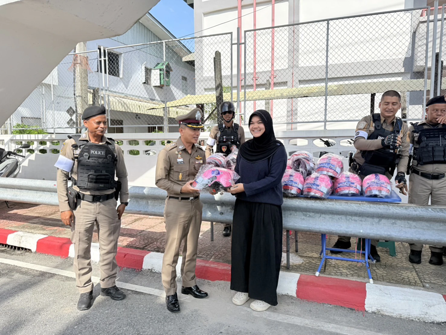 พ.ต.อ.ปรัชญา ไบเตะ เปิดเผยว่า จากสถิติอุบัติเหตุในช่วงเทศกาลต่าง ๆ ของทุกปี พบว่าสาเหตุสำคัญที่ทำให้มีผู้เสียชีวิตและบาดเจ็บจำนวนมาก มักเกิดจากรถจักรยานยนต์และผู้ขับขี่ไม่สวมหมวกนิรภัย สภ.เมืองนราธิวาสจึงปรับแนวทางการบังคับใช้กฎหมายในเชิงสร้างสรรค์ ด้วยการ “แจกหมวกนิรภัยแทนการปรับ” เพื่อเป็นของขวัญปีใหม่ 2569 และเป็นการเตือนสติให้ผู้ขับขี่เห็นถึงความสำคัญของการป้องกันตนเอง พร้อมทั้งอวยพรให้ประชาชนเดินทางอย่างปลอดภัยตลอดช่วงเทศกาล