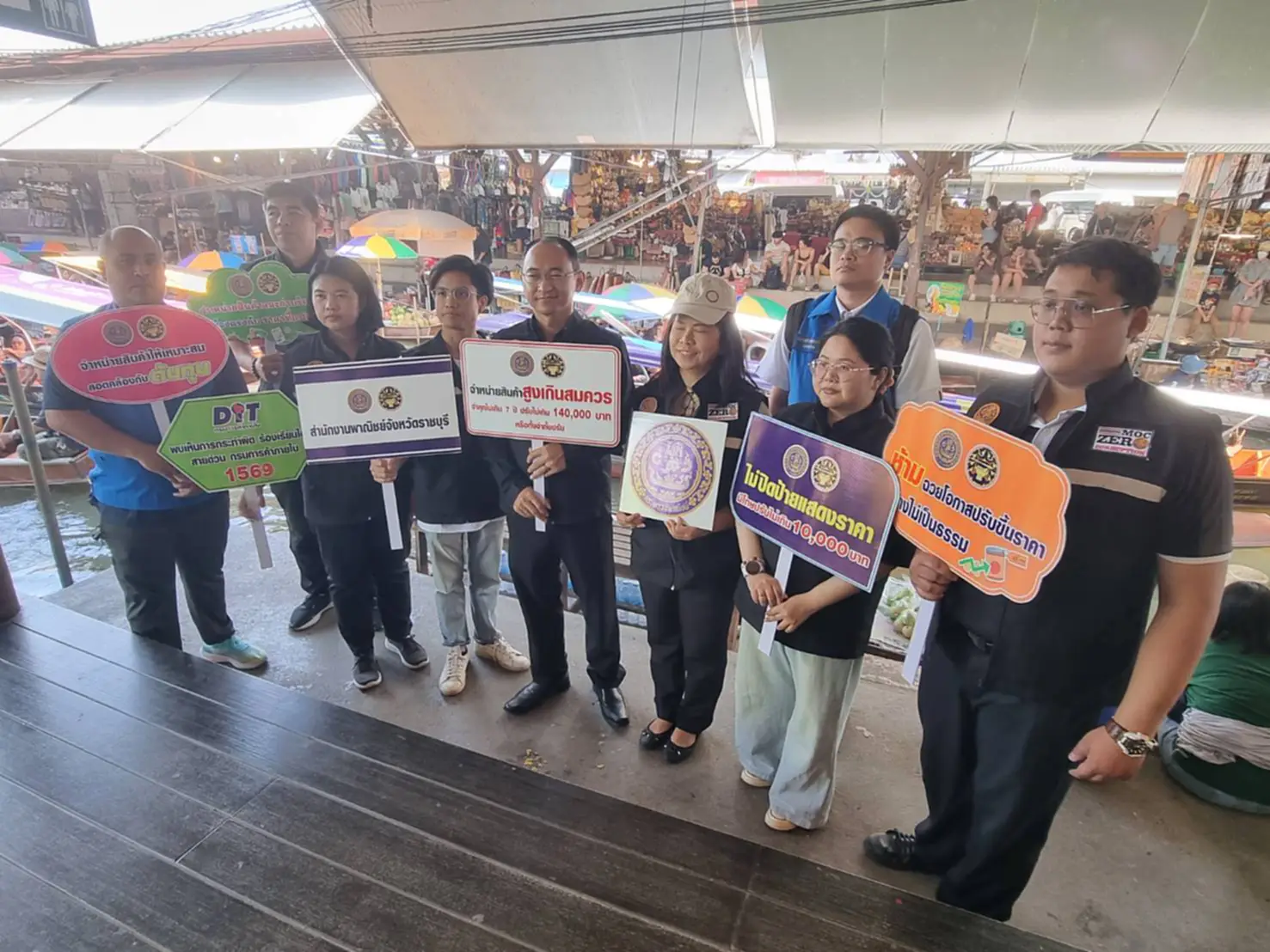 พาณิชย์ราชบุรีเอาจริงตลาดน้ำดำเนินสะดวกเปิดภารกิจ “นักท่องเที่ยวเป็นหูเป็นตา” แจ้ง 1569 ผู้ค้าไม่ปิดป้ายราคา จับกุมแล้วกว่า 10 ราย