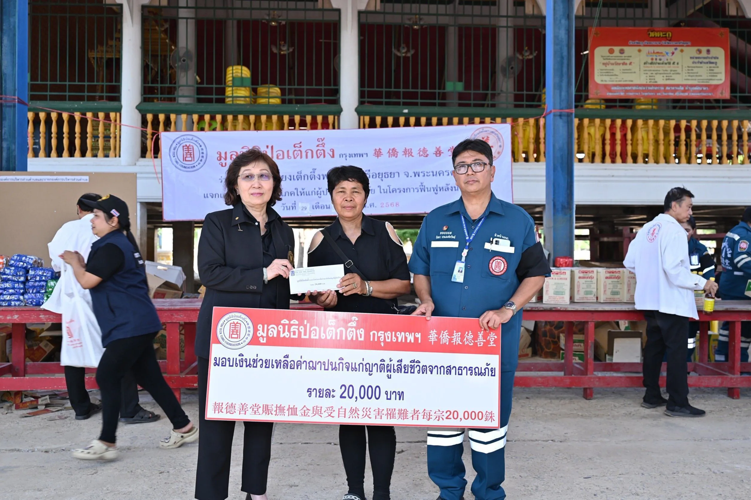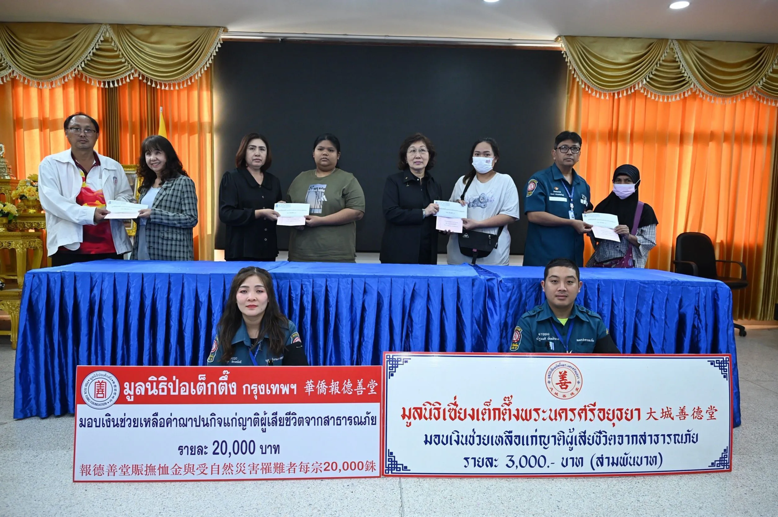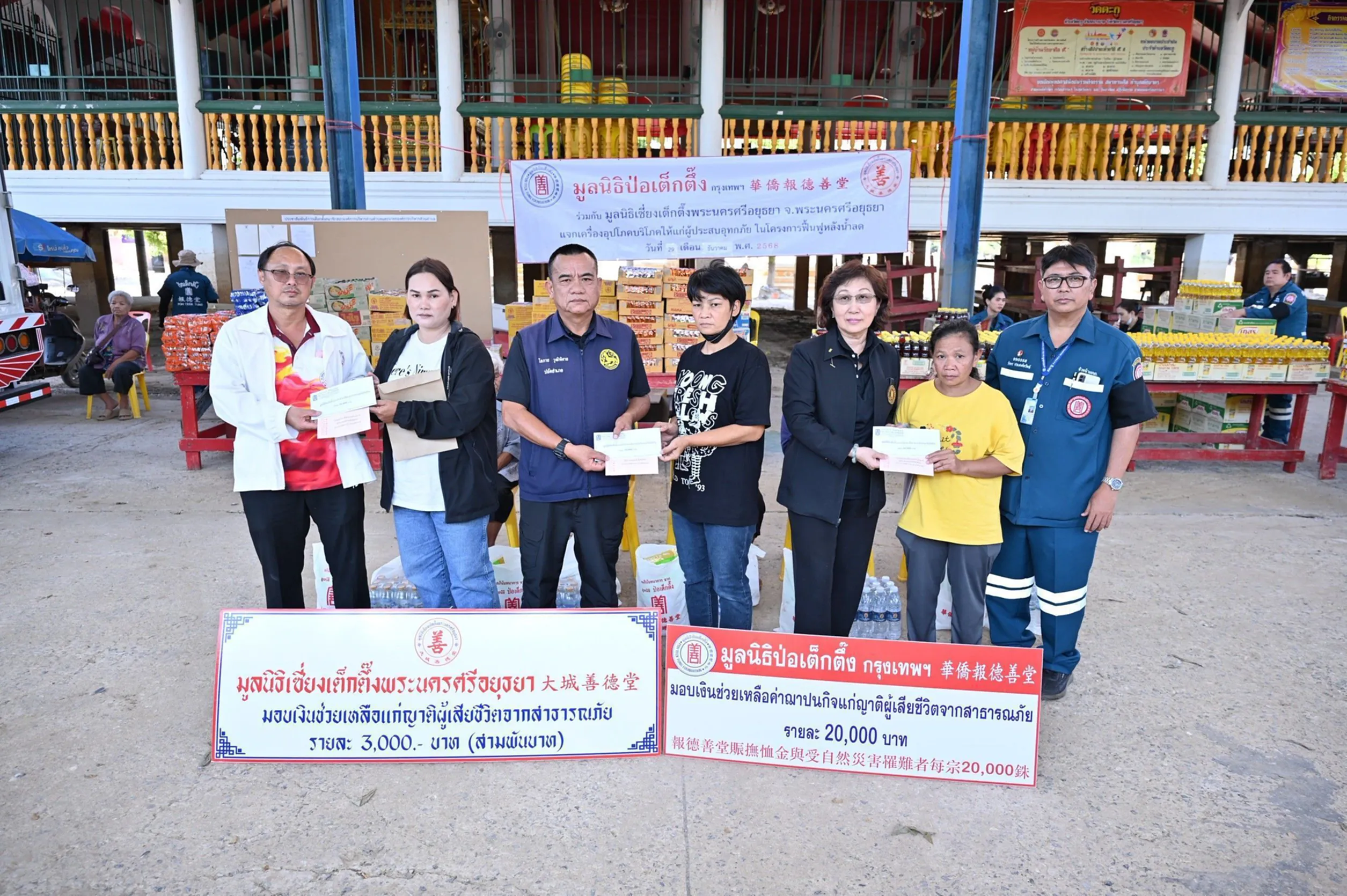 เมื่อวันที่ 29 ธันวาคม 2568 มูลนิธิป่อเต็กตึ๊ง นำโดย นางสาวดวงชุตา ติยะพจนพรกุล ผู้ช่วยผู้จัดการฝ่ายสังคมสงเคราะห์ พร้อมด้วย นายรัชพร ประสงค์ทรัพย์ หัวหน้าแผนกสาธารณภัย นำทีมลงพื้นที่อำเภอลาดบัวหลวง ผักไห่ บางบาล และอำเภอเมือง จังหวัดพระนครศรีอยุธยา แจกจ่ายเครื่องอุปโภคบริโภค ประกอบด้วย ข้าวสาร ปลากระป๋อง บะหมี่กึ่งสำเร็จรูป น้ำมัน น้ำปลา และน้ำดื่ม รวมจำนวน 1,300 ชุด ๆ ละ 510 บาท พร้อมมอบเงินสงเคราะห์ค่าฌาปนกิจให้แก่ญาติผู้เสียชีวิต รวมจำนวน 12 รายๆ ละ 20,000 บาท รวมงบประมาณการฟื้นฟูหลังน้ำลดในครั้งนี้ทั้งสิ้น 903,000 บาท (เก้าแสนสามพันบาทถ้วน) โดยมี ผู้แทนจากหน่วยงานรัฐเป็นประธานในพิธี พร้อมด้วย คณะมูลนิธิเซี่ยงเต็กตึ๊งพระนครศรีอยุธยา เป็นผู้ประสานงานและร่วมให้ความช่วยเหลือ