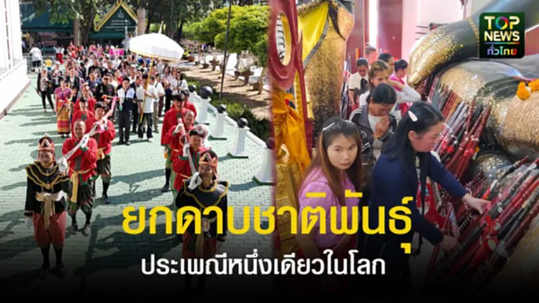หนึ่งเดียวในโลก! ยกดาบชาติพันธุ์ ตัดกรรม-รับโชคส่งท้ายปี วัดดงเสลา สุพรรณบุรี