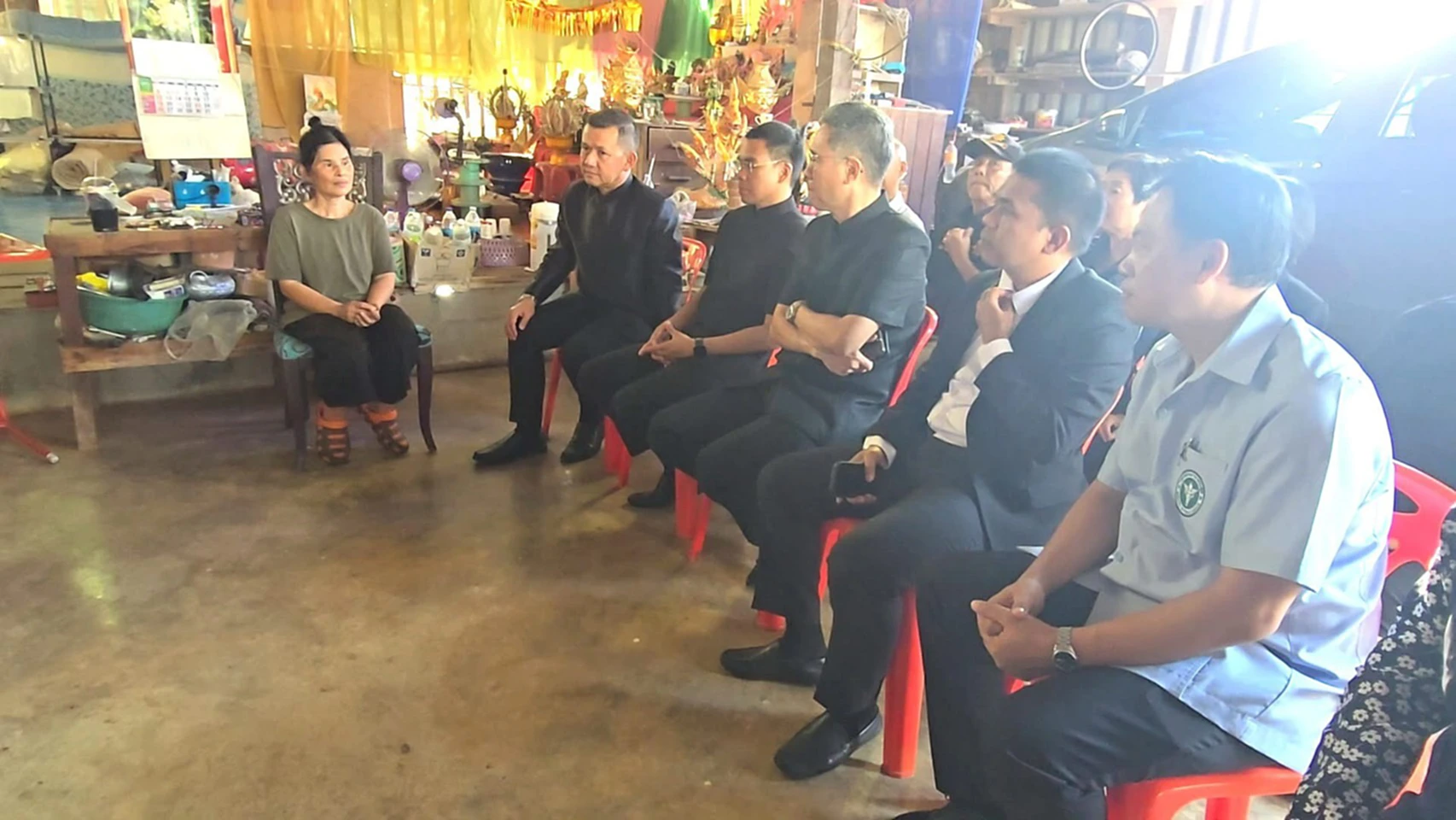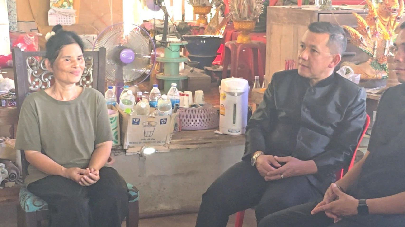 -นายชยชัย กล่าวว่า ตนเป็นผู้แทนของพี่น้องชาวสมุทรสงคราม นำความห่วงใย ความปรารถนาดี ความขอบคุณ มาเยี่ยมให้กำลังใจคุณแม่จ่าตุ่น จากการพูดคุยพบว่านางรจนามีปัญหาสุขภาพ จึงได้มอบให้สาธารณสุขอำเภอ ดูแล รักษาตัว นอกจากนี้ส่วนราชการที่เกี่ยวข้อง ผู้นำท้องที่ท้องถิ่นก็ได้เข้ามาดูแล อย่างไรก็ตาม ทราบว่า เมื่อวานนี้นางรจนามีความกังวลมาก แต่เมื่อมาพูดคุยและได้ทราบว่าลูกชายปลอดภัย ทำให้นางรจนาขวัญกำลังใจดีขึ้น วันนี้จึงขออนุญาตนางรจนา มาเยี่ยมเยียนในครังนี้
