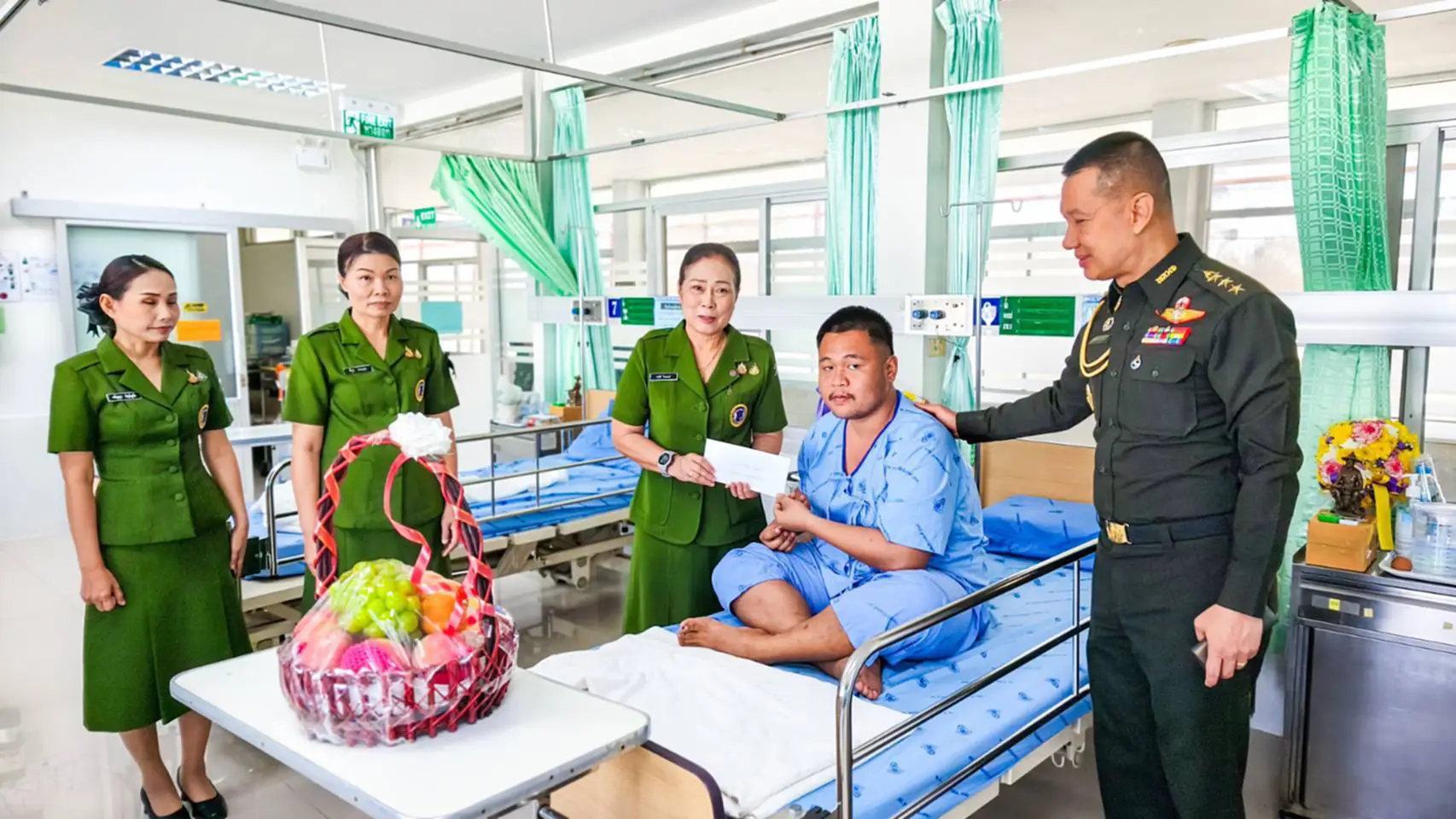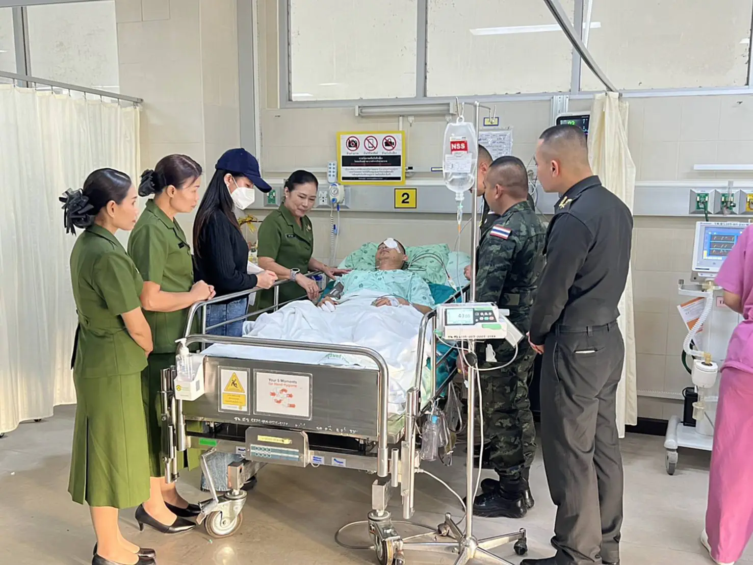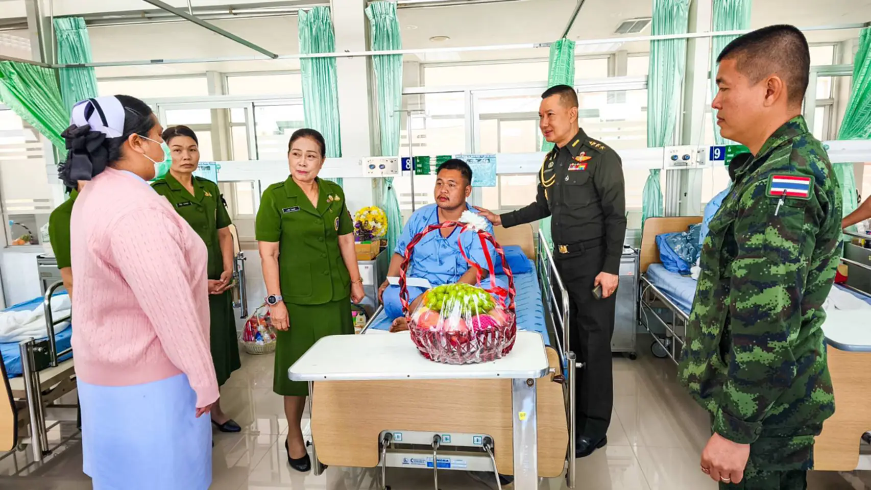 ในการตรวจเยี่ยมกำลังพลทุกนาย ได้เข้าสอบถามอาการบาดเจ็บ ความเป็นอยู่และความคืบหน้าในการรักษาพยาบาลของกำลังพลอย่างใกล้ชิด พร้อมกับให้กำลังใจแก่กำลังพลทุกนายที่ได้ปฏิบัติหน้าที่ด้วยความเสียสละ จากการประเมินของแพทย์ผู้ดูแลรักษา อาการทางร่างกายของกำลังพลมีแนวโน้มดีขึ้นตามลำดับ ในส่วนของสภาพจิตใจยังต้องใช้เวลาในการฟื้นฟู และเยียวยา